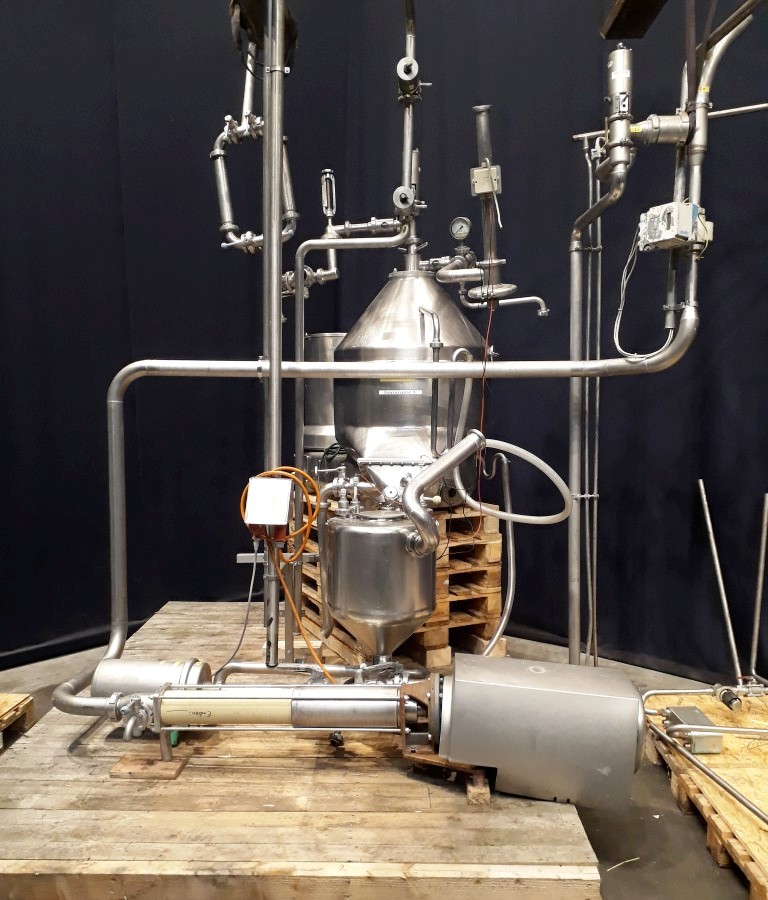 Max bowl speed 5500 RPM, rated @ 10,000 LPH input, 2100 KPH output, 20 KW motor 380/3/50/2910 RPM, all valves, pressure gauge, base frame, quark tank, tools, pumps, quark plate cooler and manuals. No control panel. 1979 vintage. Very good condition.