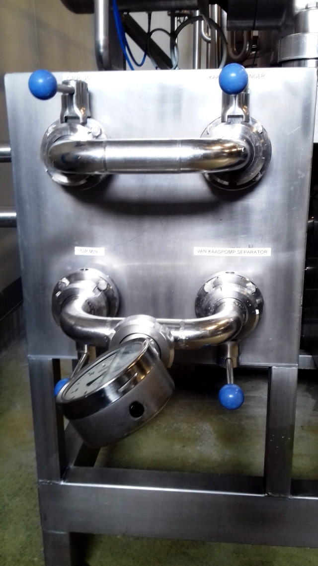 Max bowl speed 7500 RPM, rated @ 1500 LPH, 7.5 KW motor 380/3/50/1450 RPM, counter-pressure, control bypass and water valves, manometer on whey and tools. CIP cleanable. No controls. 1978 vintage. Excellent condition. FCA Europe.