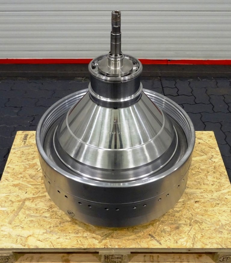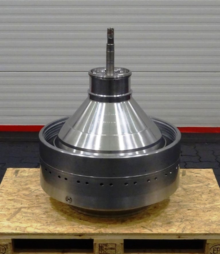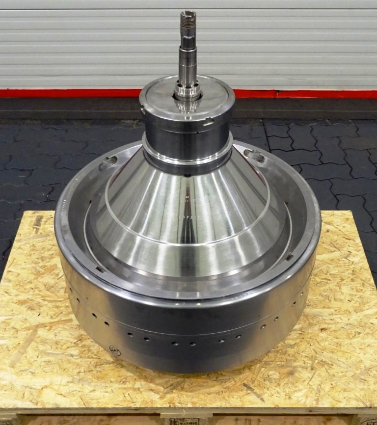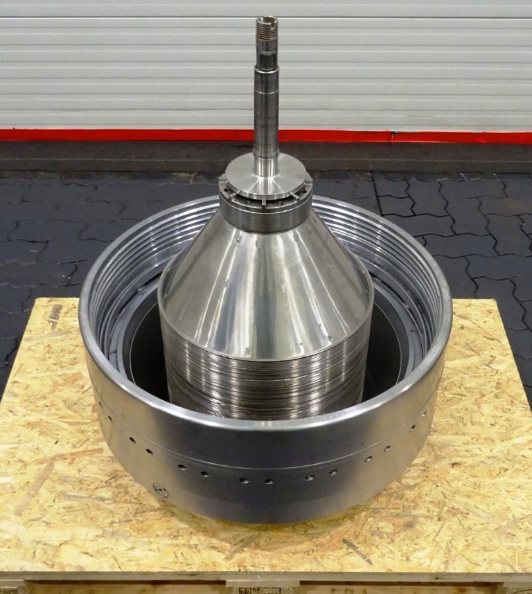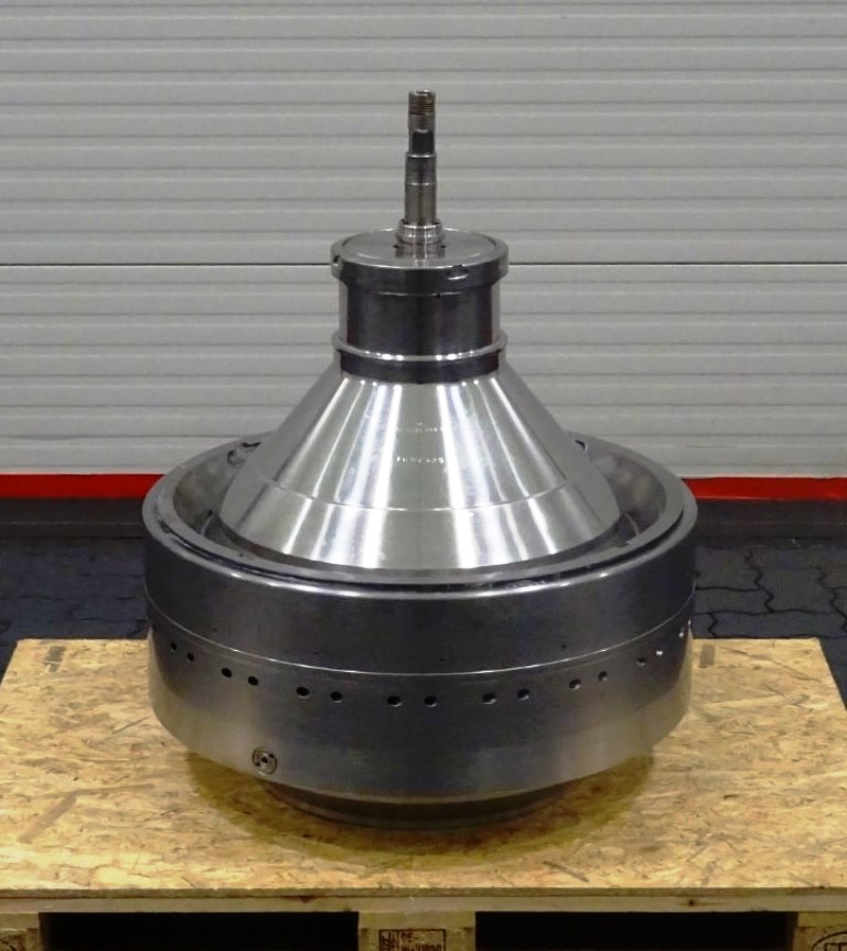 Max bowl speed 4500 RPM, rated @ 15,000 LPH on skimming. 22 KW motor 380/3/50/1460 RPM with fluid clutch, pressure meter on outlet and counter pressure valve, manual flow regulation valve for cream, maneuvering water valves, piping, base frame and tools. 1976 vintage. Very good condition. Located in Europe.