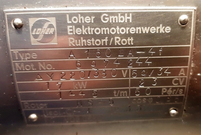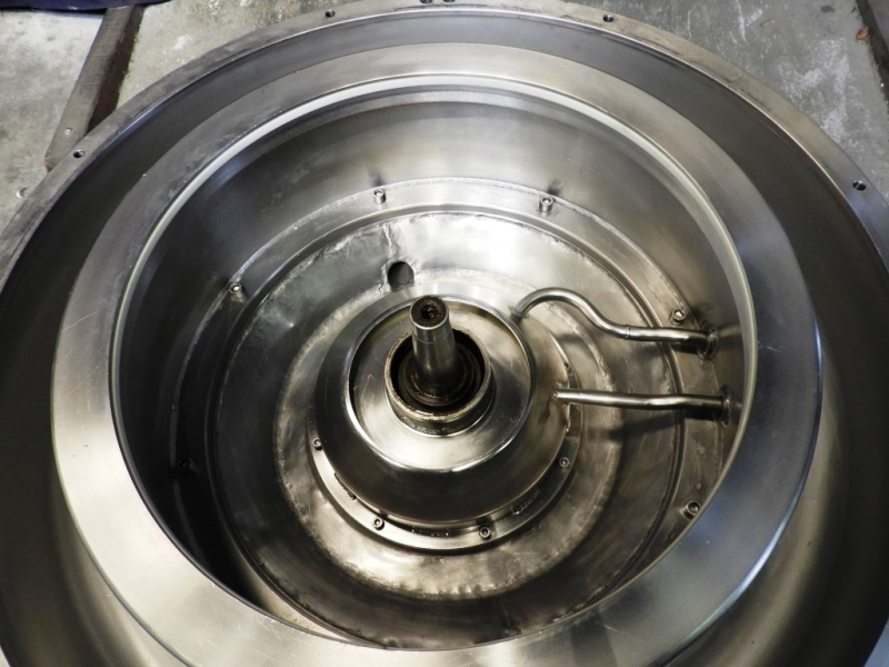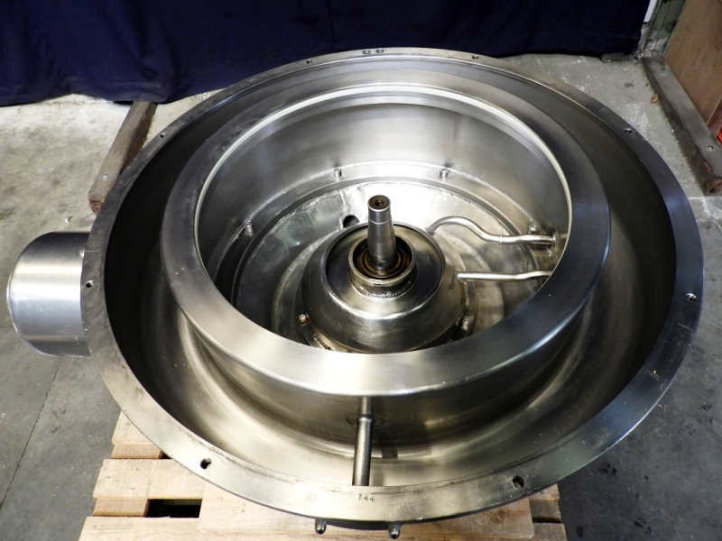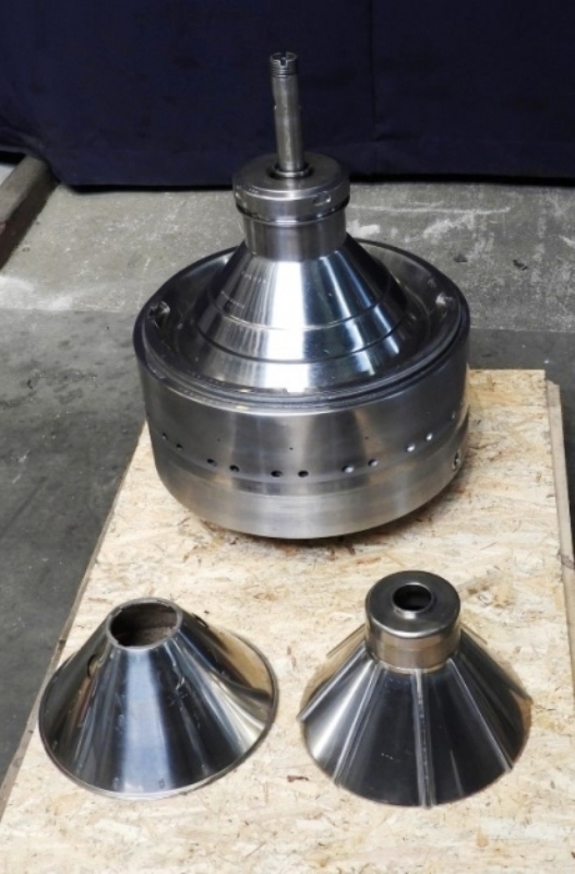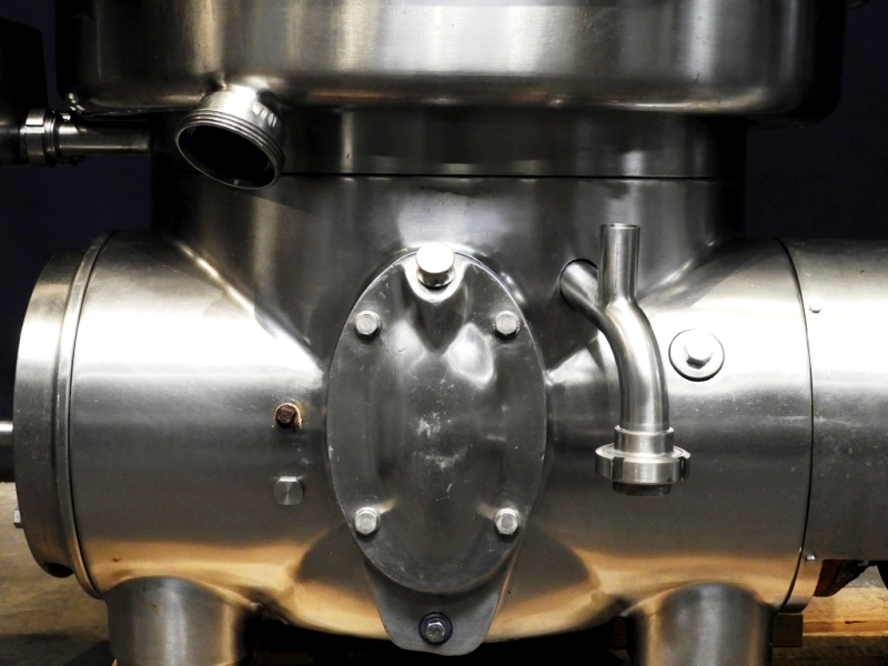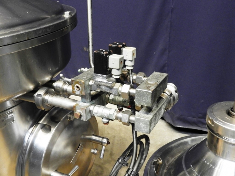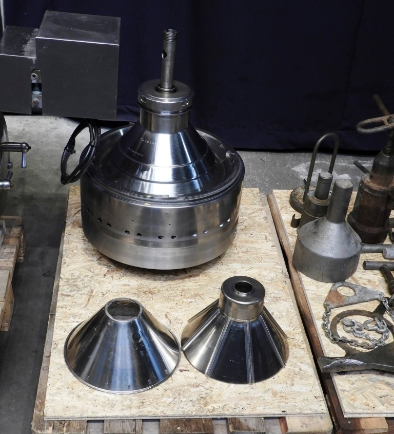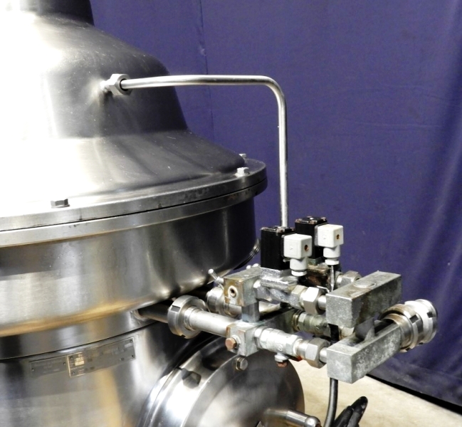 Bowl speed 6450 RPM, rated @ 10,000 LPH milk standardization/cleaning/whey skimming, 7000 LPH milk skimming, 17 KW motor 380/3/50/1445 RPM, base plate, tools and water valves. 1976 vintage. Excellent condition. FCA Europe.