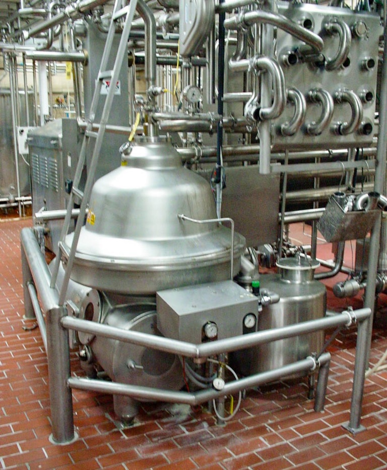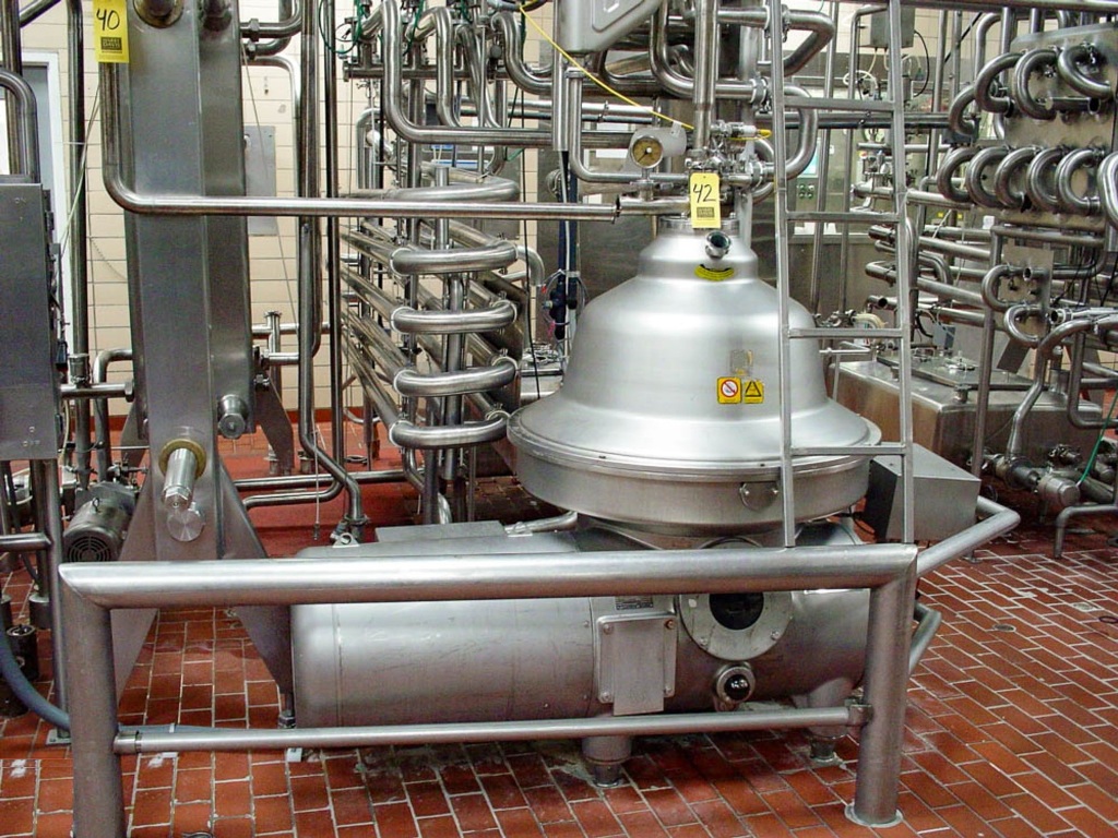 Max bowl speed 4700 RPM, rated @ 25,000 LPH separation. 26 KW motor 230/460/3/60/1750 RPM, counter pressure valve on inlet, manometer, manual flow regulation valve and flow indicator for cream, water harness, foundation frame, tools and controls - with online standardizer. Excellent condition.