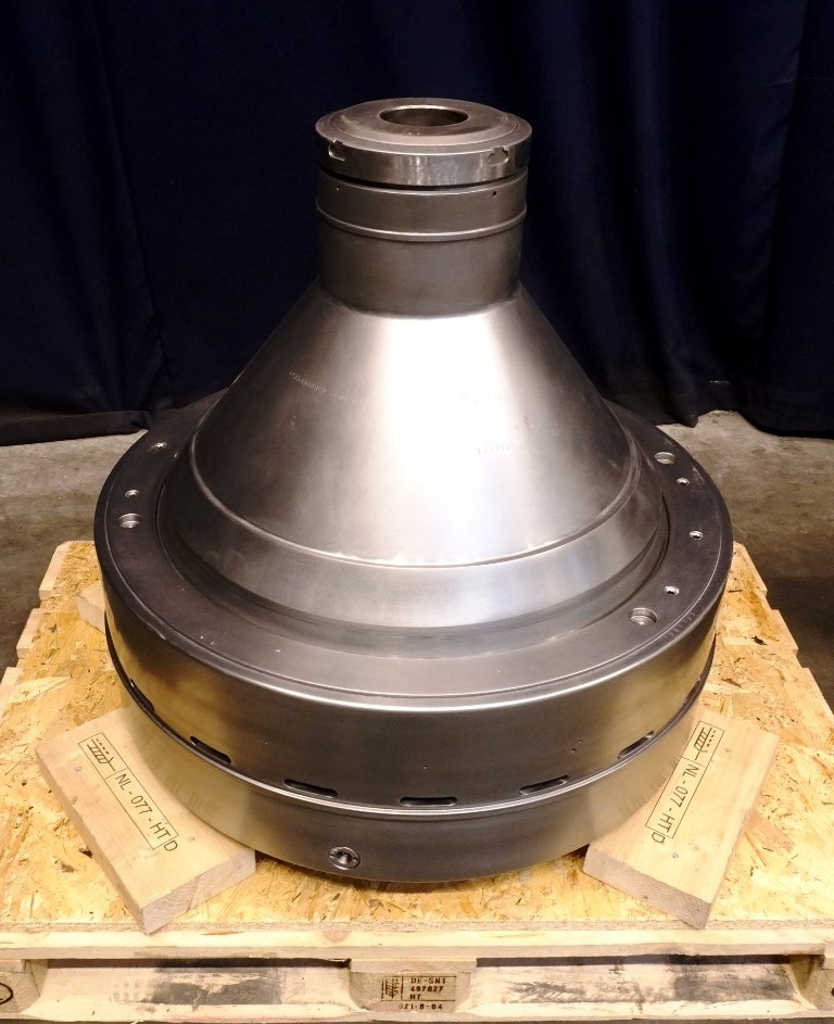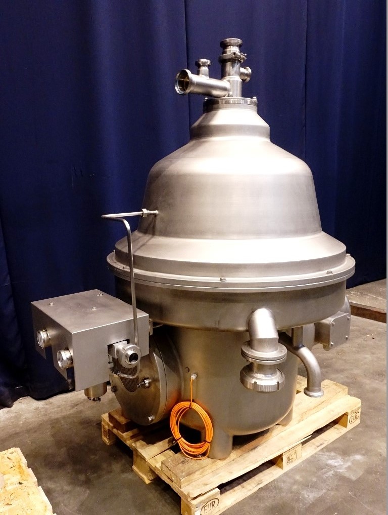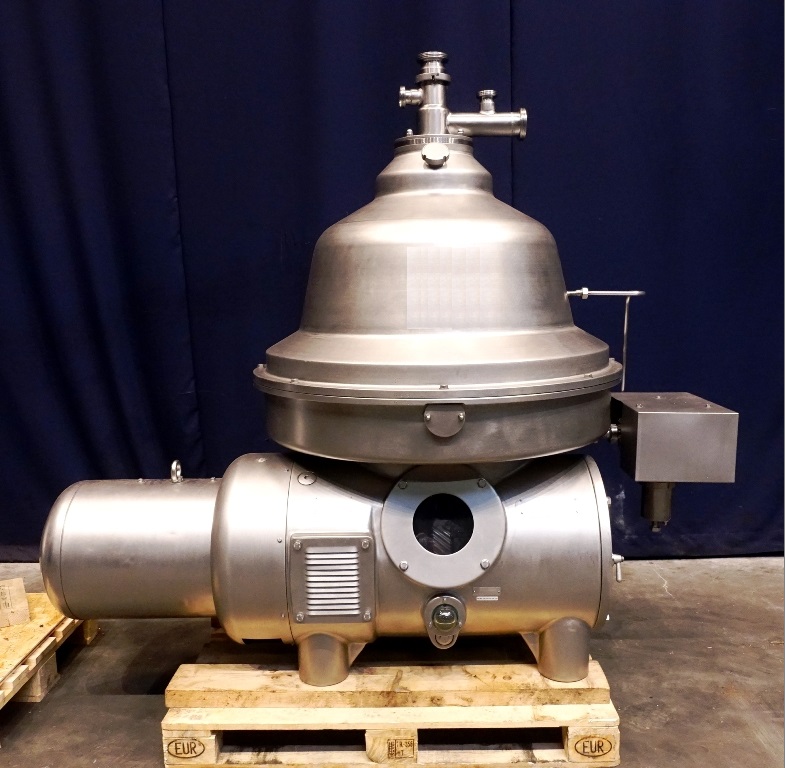 Max bowl speed 4700 RPM, rated @ 30,000 LPH. 37 KW motor 415/3/50/1450 RPM, water harness, base frame, tools, valves, flow meter and control panel with VFD. 1998 vintage. Reconditioned to "as new" with full mechanical warranty. FCA Europe.