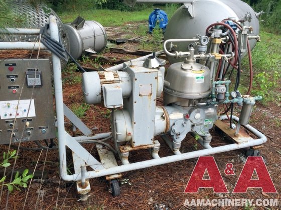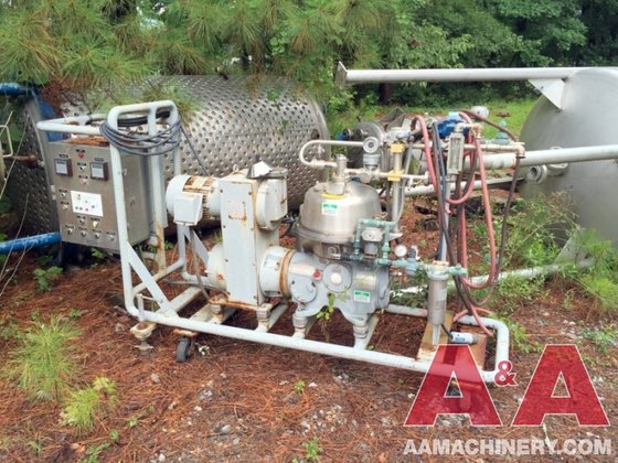 Powered by a robust 7.5 HP motor, the Westfalia NA 7-06-076 operates at 230/460 volts, 3-phase, 60 Hz, and 1800 RPM, providing the necessary torque and speed for demanding applications. The unit comes equipped with essential components including piping, valves, gauges, a turbidity meter, a timing unit, and tools, ensuring a comprehensive setup for immediate deployment. The inclusion of these features enhances the usability and functionality of the centrifuge, allowing operators to monitor performance metrics and maintain optimal operating conditions. Additionally, the unitized design on a portable cart allows for easy maneuverability within the facility, making it convenient to relocate as needed. Despite being a 1986 vintage model, this centrifuge is in very good condition, reflecting its durability and the quality of materials used in its construction.