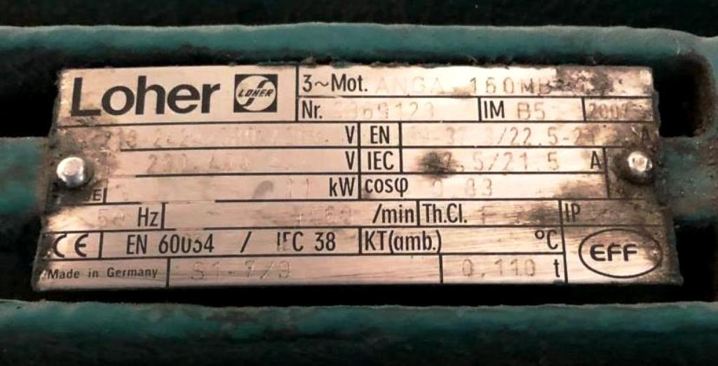 Max bowl speed 3000 RPM, rated @ 150 GPM, gravity discharge design, 6" single lead hardsurfaced conveyor, 35 KW motor 380/3/50, cyclo gearbox, 11 KW backdrive, feed tube, guards, chutes on stand and control panel. 2007 vintage. Very good condition.