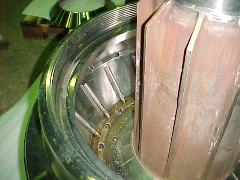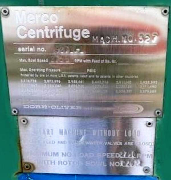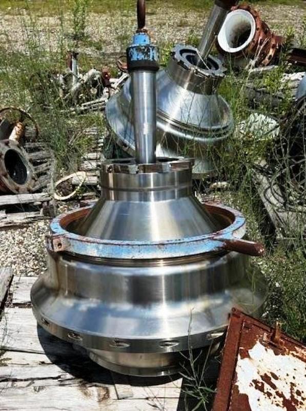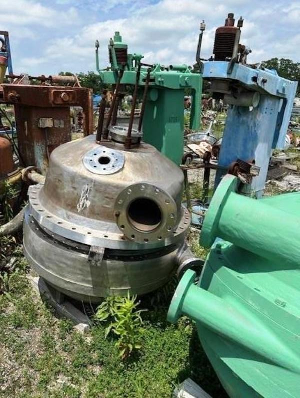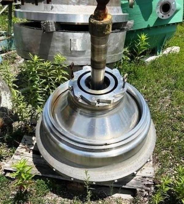 Max bowl speed 2750 RPM, rated @ 300 GPM, 316SS casing/ Ferralium bowl, pressuretite design, 341 PSI @ 430F max, disc spacing .050, 150 HP XP motor 380/3/60/1785 RPM, hydraulic pumping system and belt guard. 1988 vintage. Very good condition.
