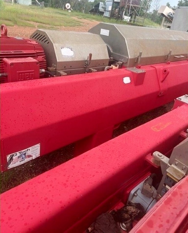 The (2) G-Tech Echo 3 2080 drilling mud decanter centrifuges, 2205 Duplex SS. are engineered for high-performance separation of drilling fluids, making them an essential asset in the oil and gas industry. With a maximum bowl speed of 3550 RPM and a centrifugal force of 3578 x G, these centrifuges efficiently separate solids from liquids, ensuring optimal mud recovery and minimizing waste. The bowl dimensions of 508 x 2035mm (20 x 80") provide a substantial surface area for effective separation, while the 8-degree beach angle enhances the dewatering process. The design includes 360-degree cake ports equipped with wear protection, which significantly extends the lifespan of the equipment and reduces maintenance costs. Furthermore, the adjustable liquid dams allow for precise control of the liquid level within the bowl, optimizing performance based on varying operational conditions.