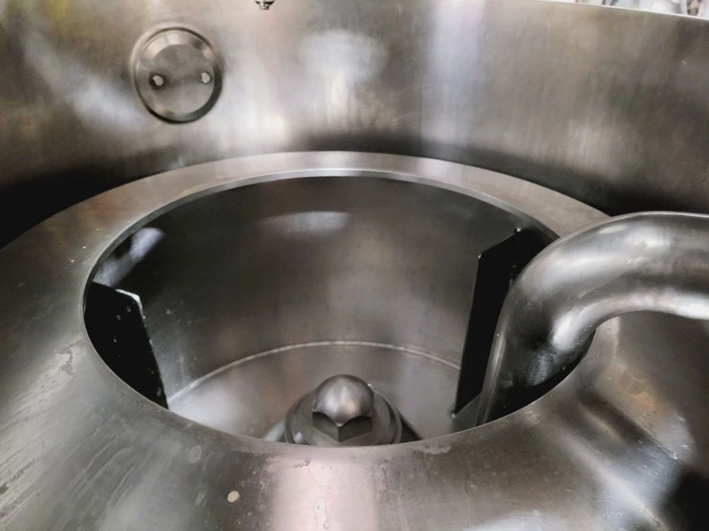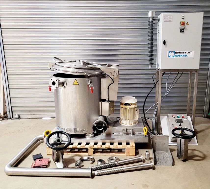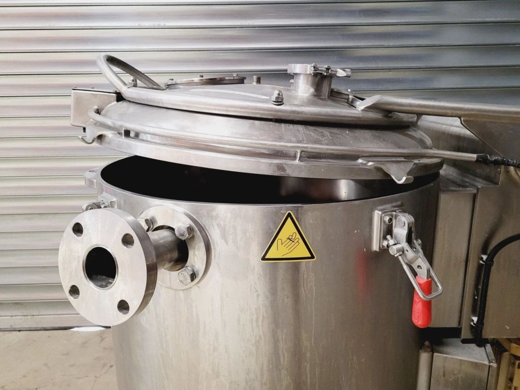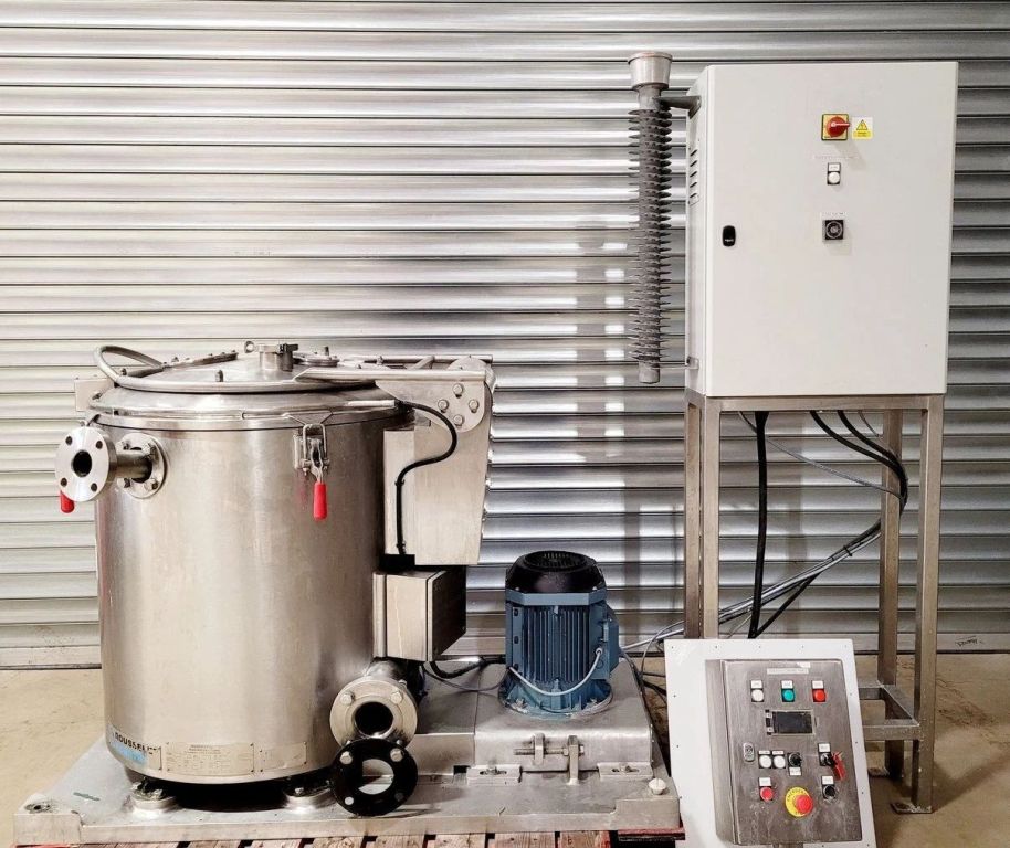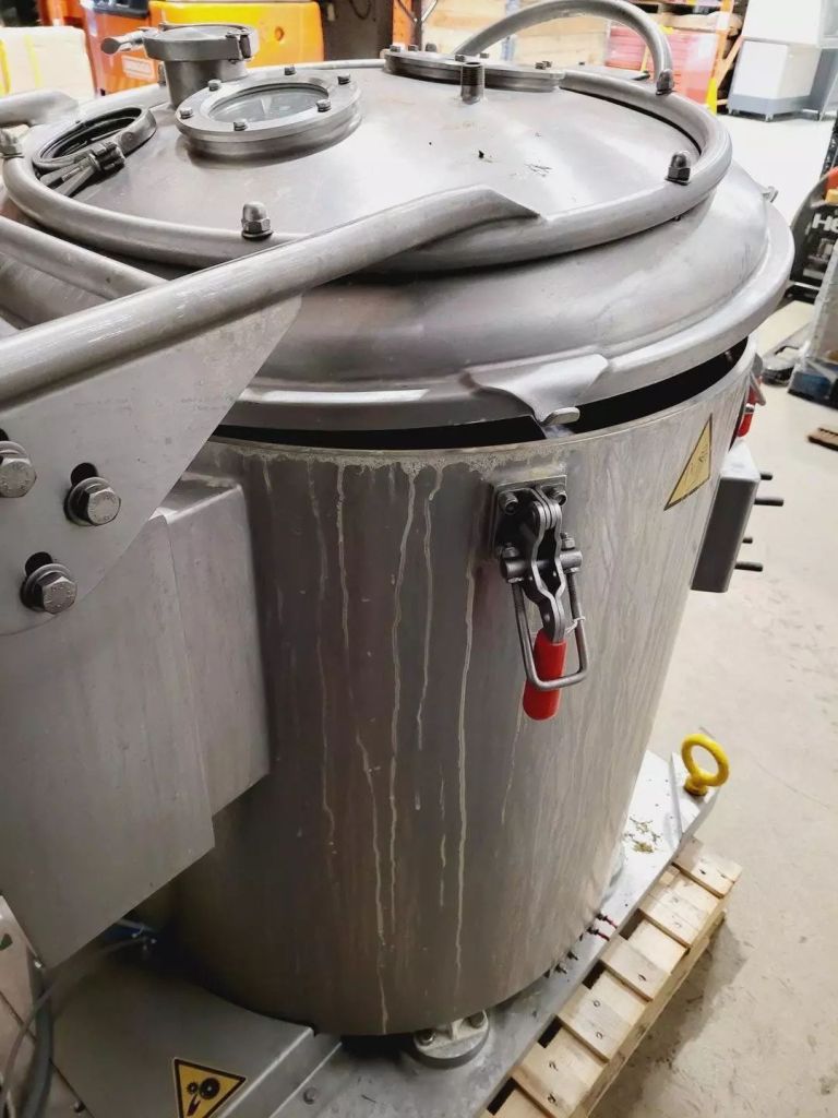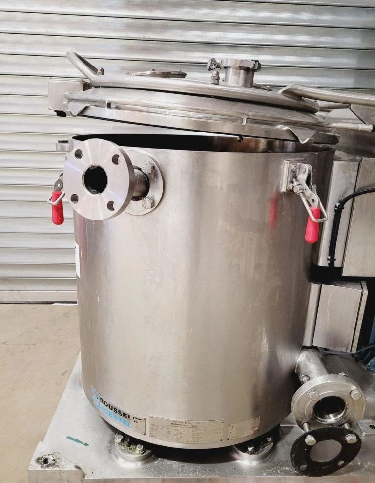 Max bowl speed 2500 RPM, 2095 x G, 350 x 500mm (23.6 x 13.8") ID solid bowl, top unload. 60 L volume, 27 L cake capacity, max load 55 kg, rated @ 65 LPH (17.1 GPM). 9.2 KW motor 400/460/3/50/60, hinged top cover opened with electric motor, sight glass, feed pipe, liquid skimmer/siphon, mounted on inertia base with control panels. 2010 and 2017 vintage. Excellent condition. Located in UK.