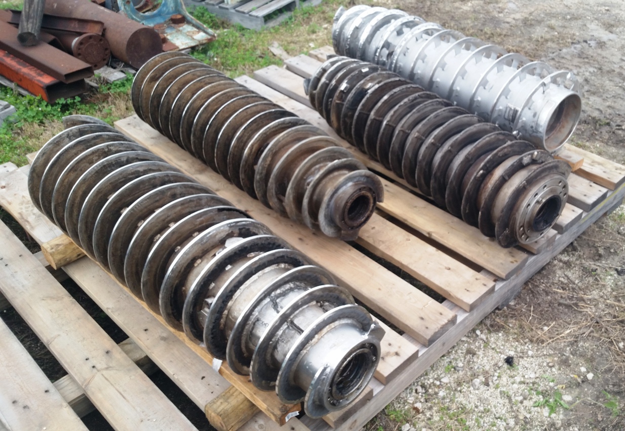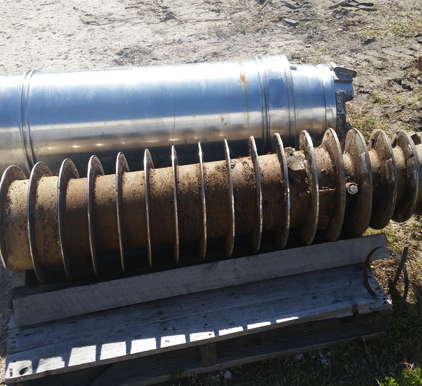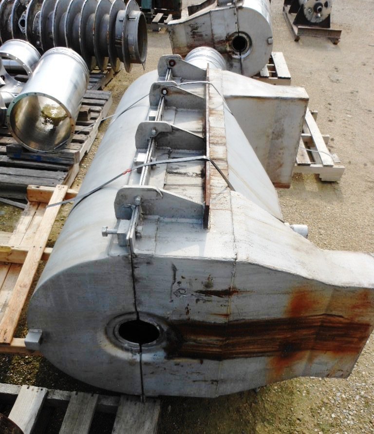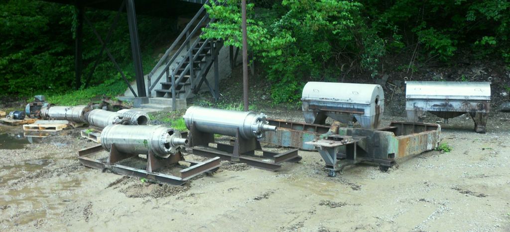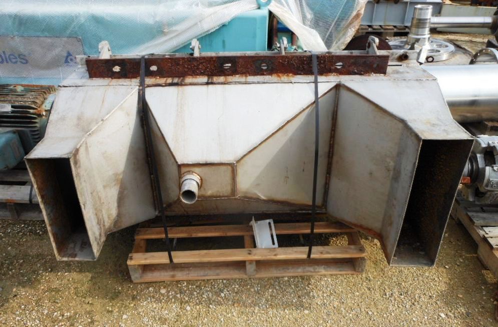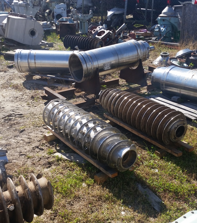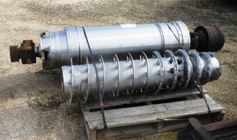 Max bowl speed 4000 RPM, hogged-out cake ports, grooved beach, 3" single lead hardsurfaced conveyor, 40 HP motor 460/3/60, 125:1 gearbox, backdrive, feed tube & chutes. Prior use: Distillery. 1970 vintage. Good rebuildable condition. 2 spare rotating assemblies, one gearbox & many other parts available.