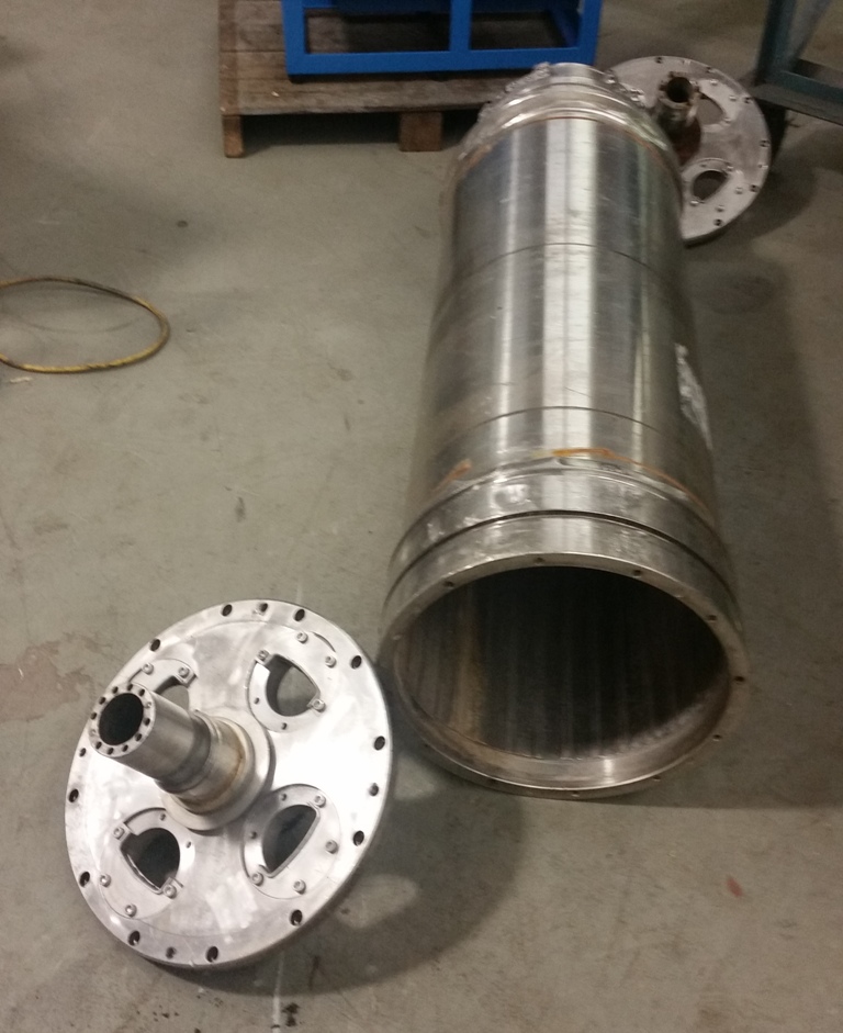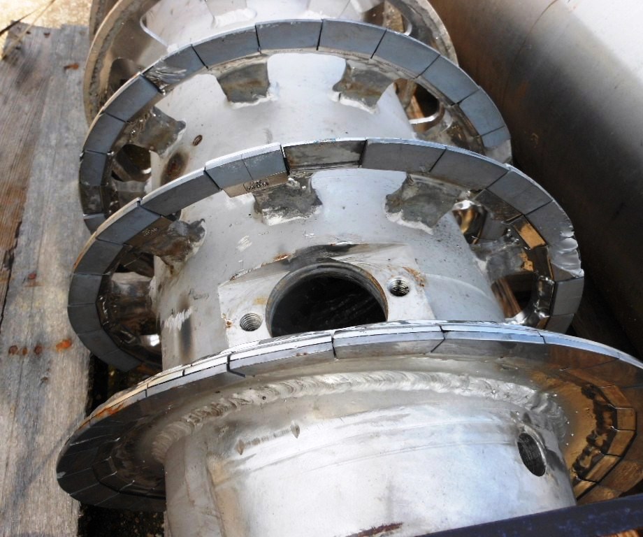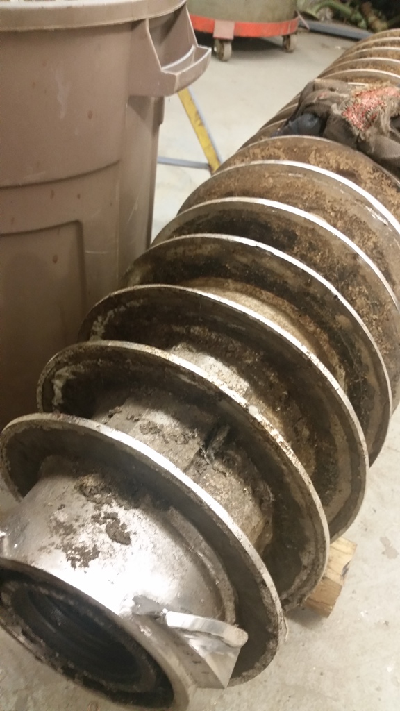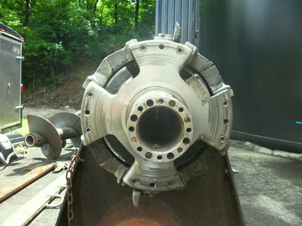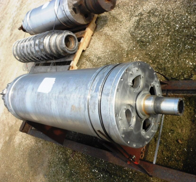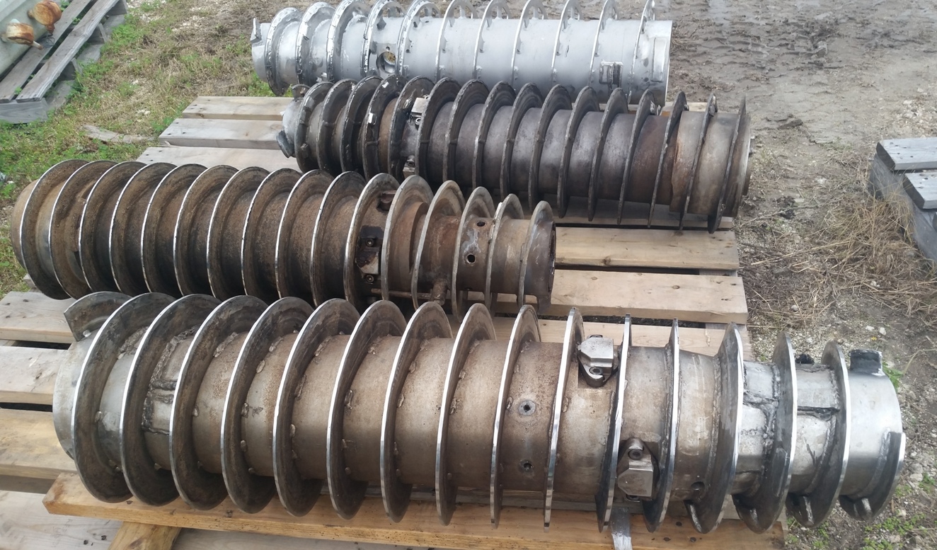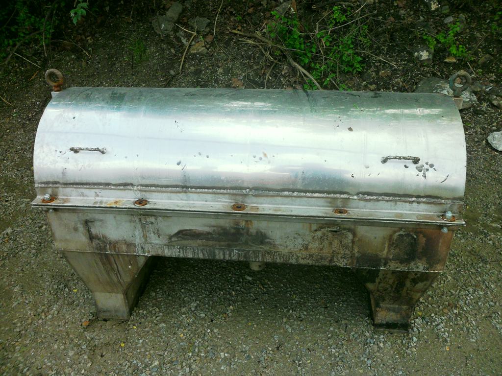 Max bowl speed 4000 RPM, hogged-out cake ports, grooved beach, 3" single lead hardsurfaced conveyor, 40 HP motor 460/3/60, 125:1 gearbox, backdrive, feed tube & chutes. Prior use: Distillery. 1970 vintage. Good rebuildable condition. 2 spare rotating assemblies, one gearbox & many other parts available.