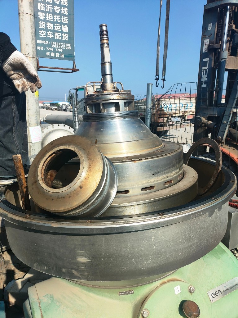 Max bowl speed 5260 RPM, 8950 x G, rated @ 30,000 LPH, both liquid phases discharged under pressure, 30 KW motor 380/3/50/1460 RPM. No tools or timer/control panel. 2000 & 2001 vintage. Very good condition. Located in China.