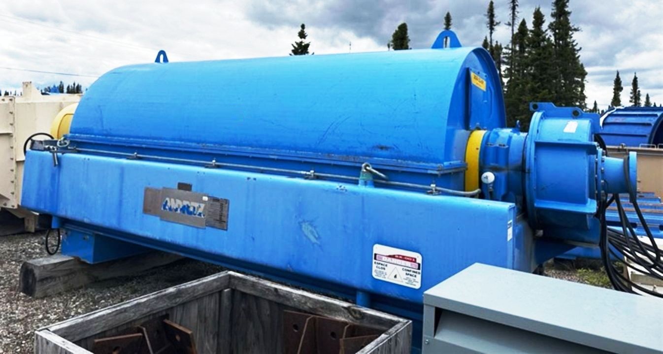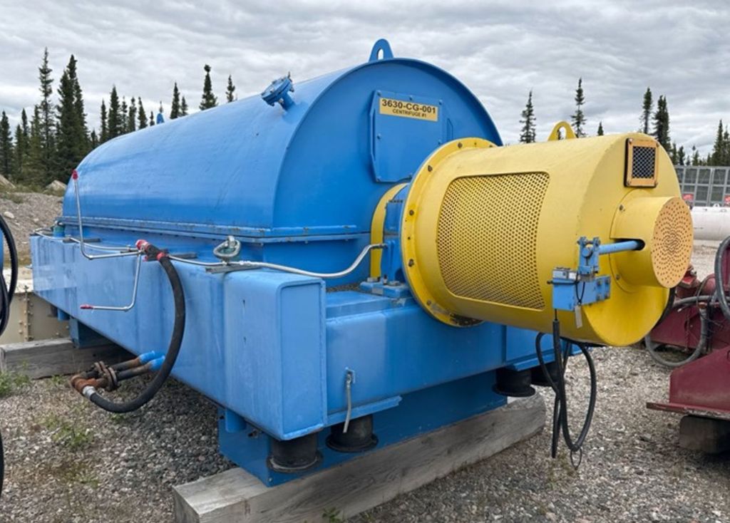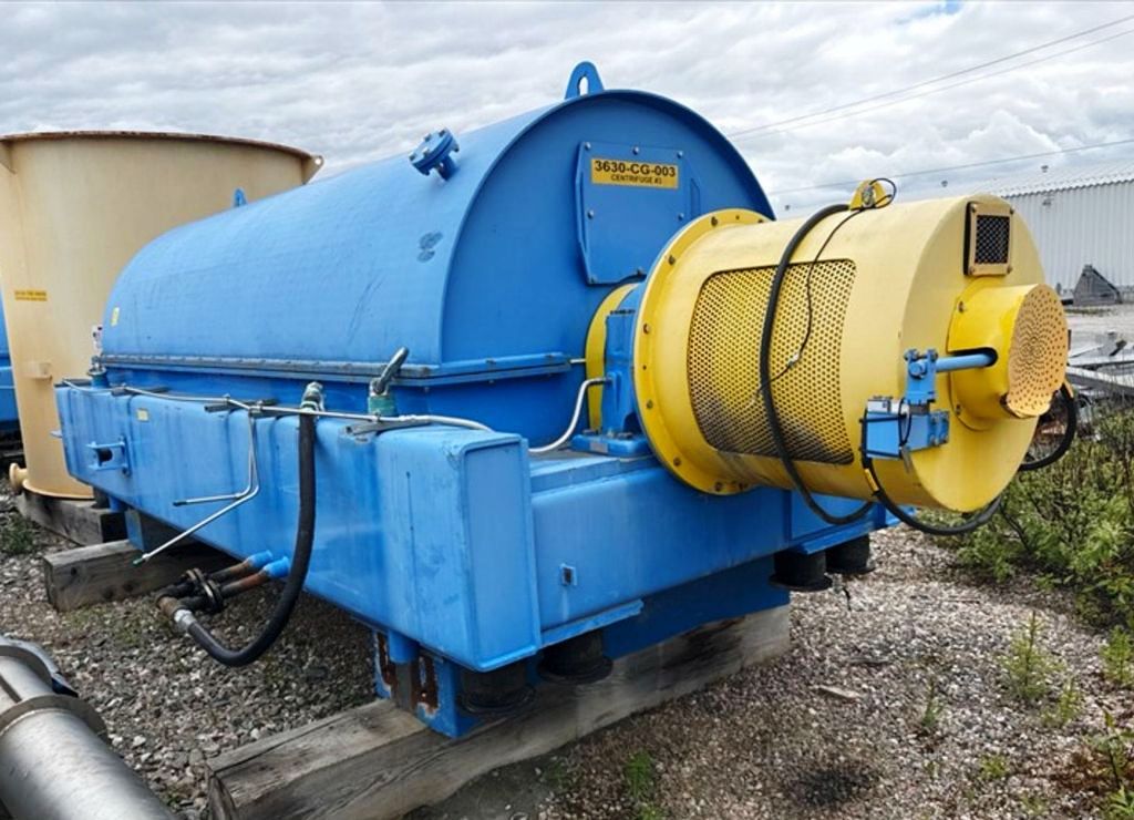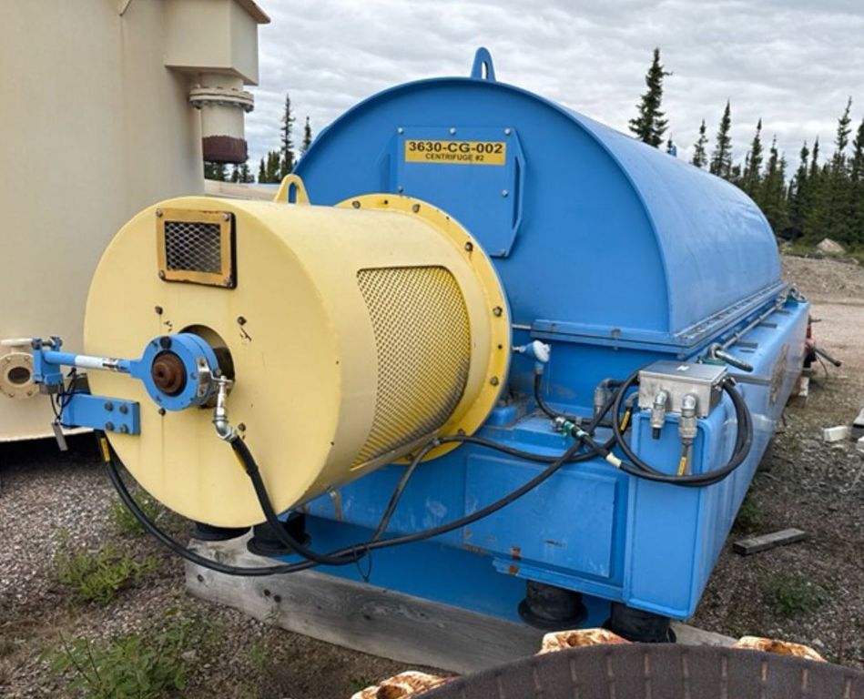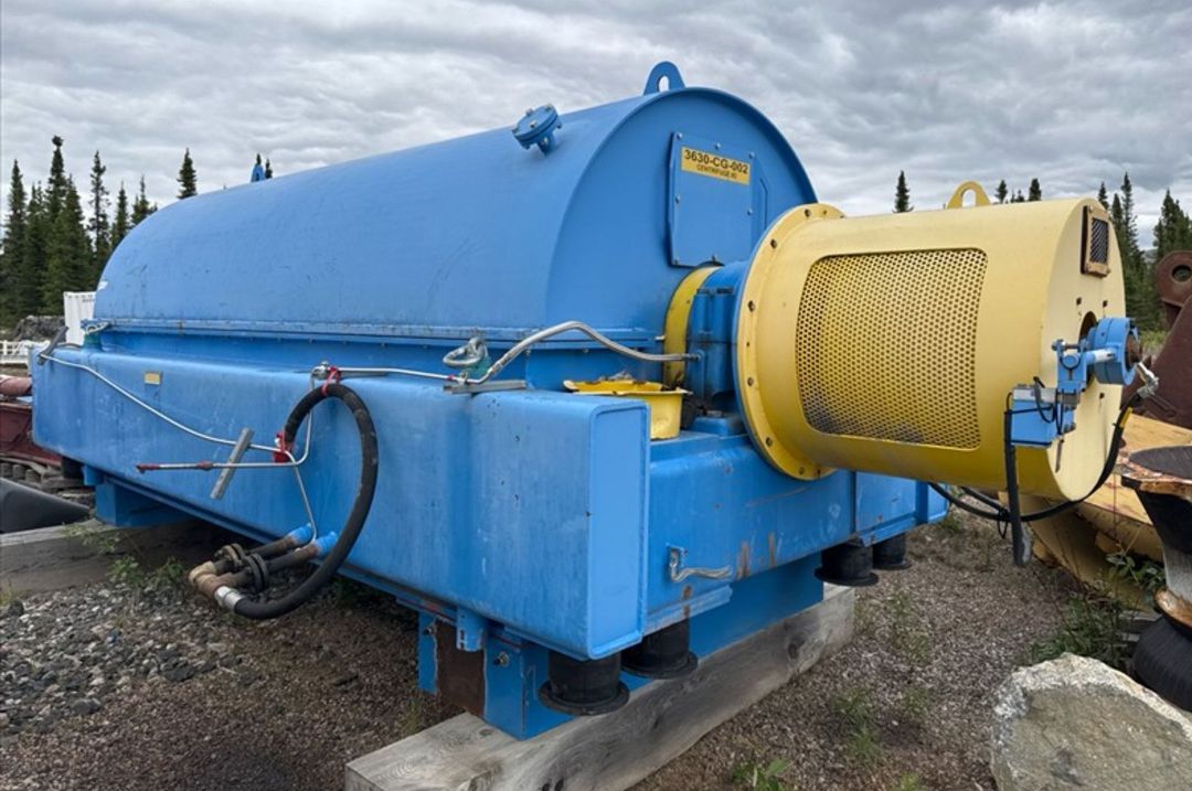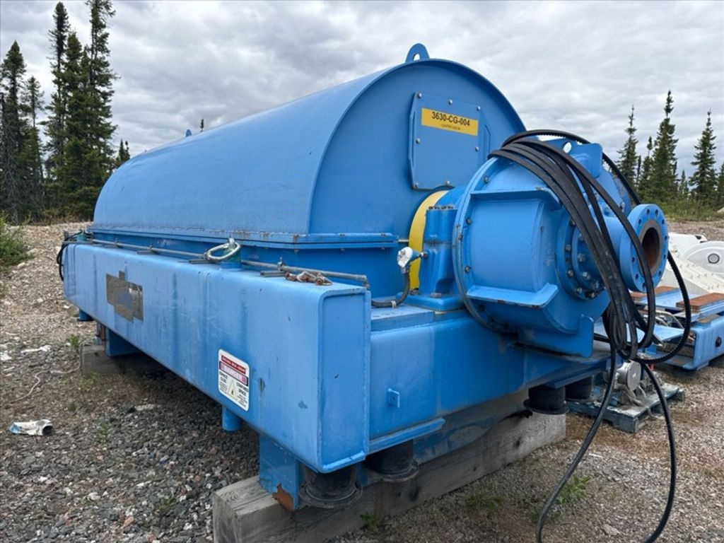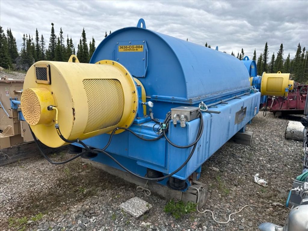 Max bowl speed 1400 RPM, 1235 x G, 8 degree beach angle, 14" double lead ceramic-tiled conveyor and feed zone, 400 HP motor 575/3/60/1180 RPM, SA-57 39:1 gearbox, limit switch, lube system, feed tube and guards. Excellent condition. Located in Canada.