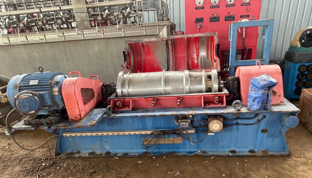 Constructed from 316 stainless steel, these centrifuges offer superior corrosion resistance, making them suitable for use in harsh environments typical of oilfield operations. The unitized design on an oilfield skid not only facilitates easy transportation and installation but also ensures stability during operation. The inclusion of a feed tube, guards, and a comprehensive lubrication system further enhances the operational efficiency and safety of the centrifuges. With their very good condition, these (4) NOV/Brandt HS-1850 oilfield decanter centrifuges represent a valuable investment for companies looking to improve their fluid management processes. Located in India, they are readily available for purchase, providing an excellent opportunity for businesses seeking reliable and high-quality separation equipment.