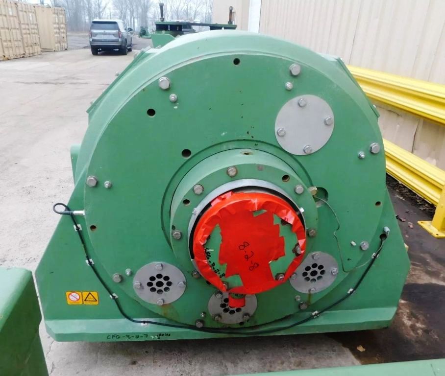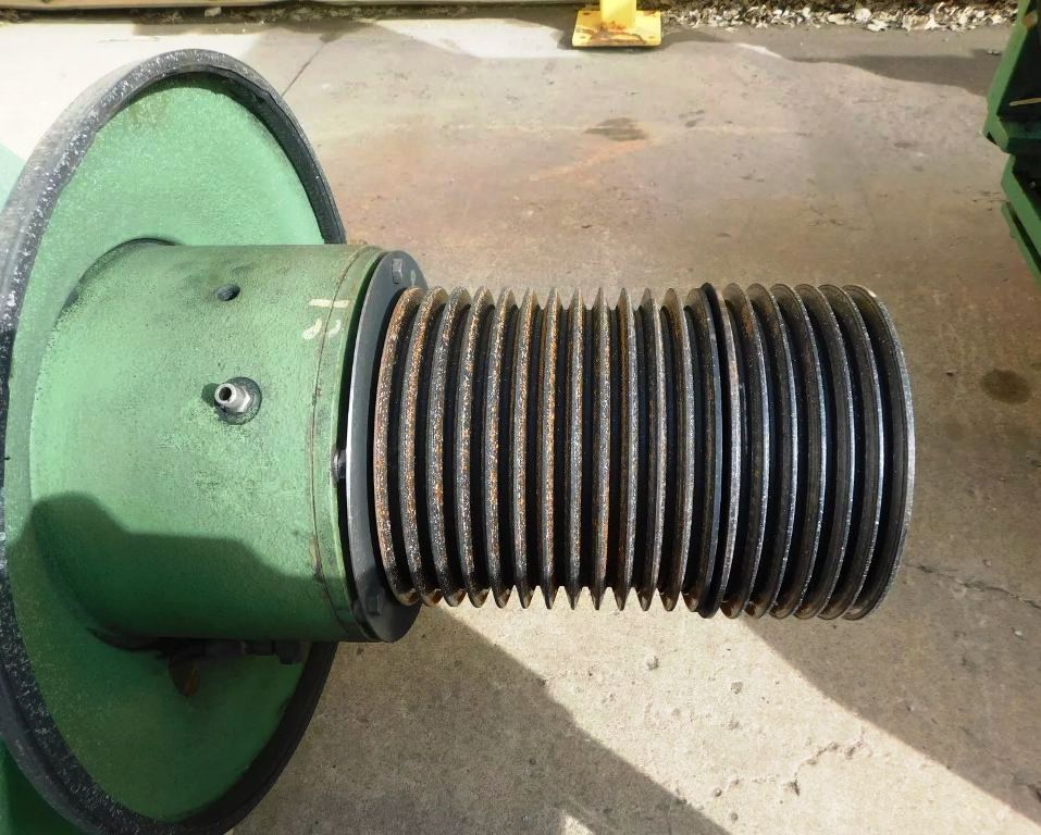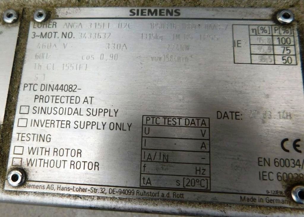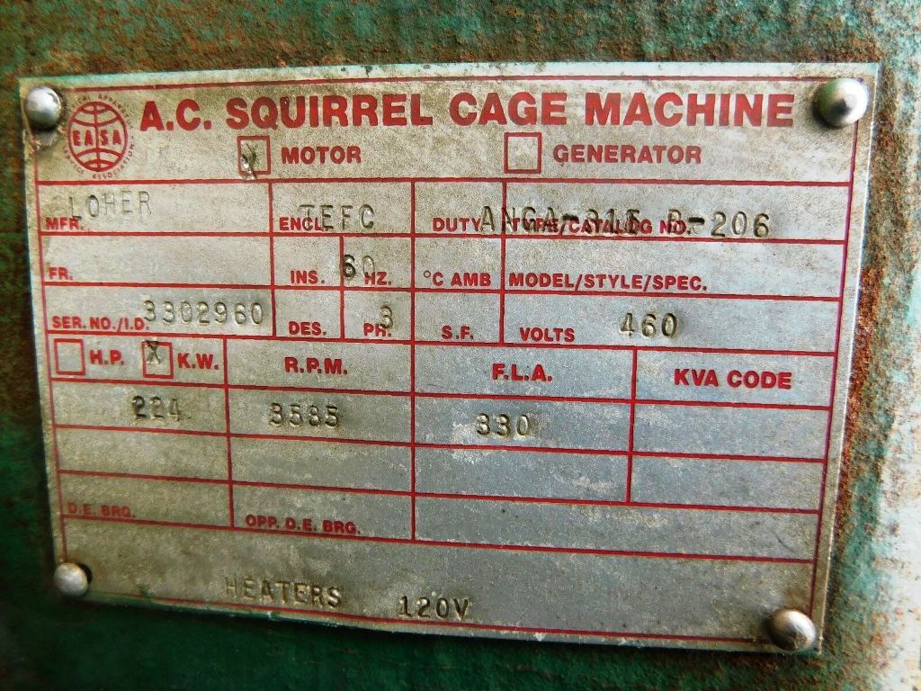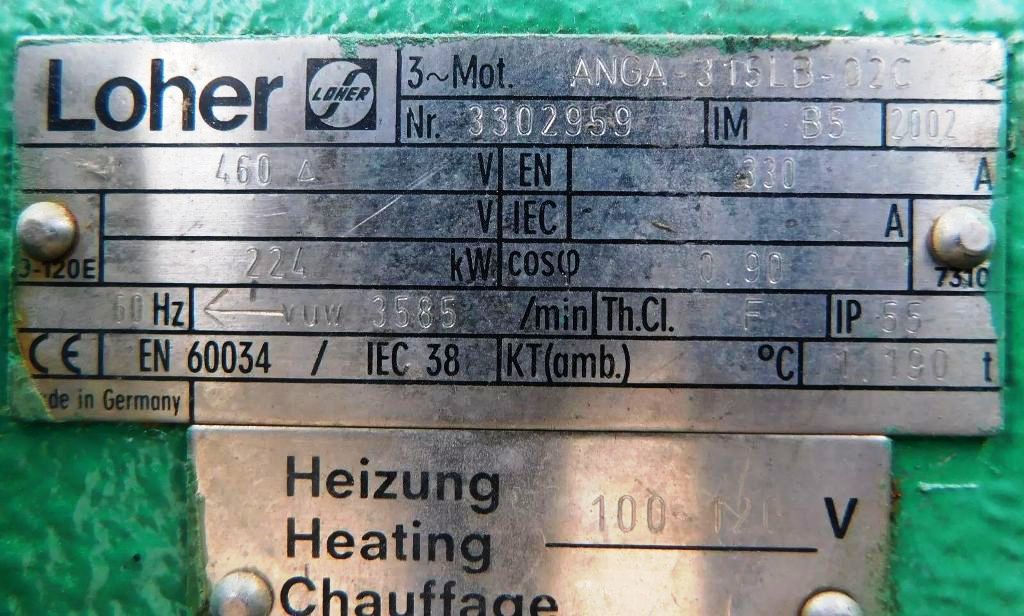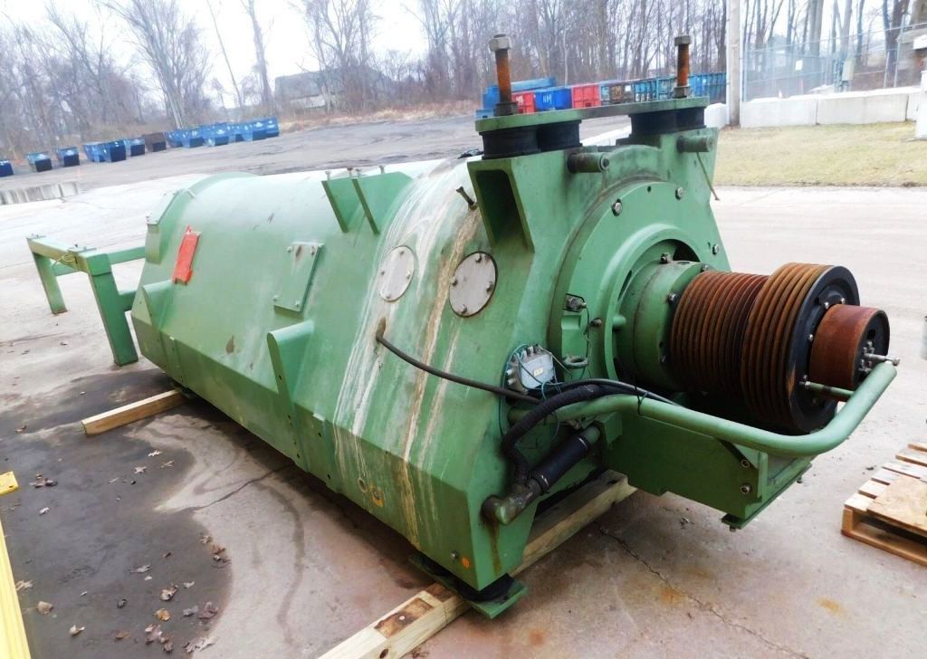 Max bowl speed 2630 RPM, 2900 x G, rated @ 60,000 LPH, liquid discharged under gravity. 10" single lead conveyor, 224 KW motor 460/3/60/3584 RPM, 30 KW backdrive, feed tube, guards, 100 W heat exchanger and stand. 2002 vintage. Very good condition.