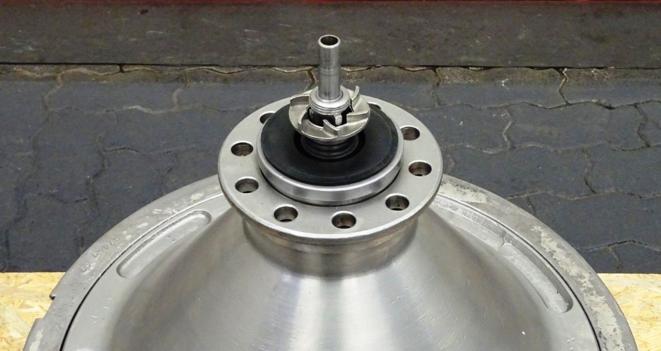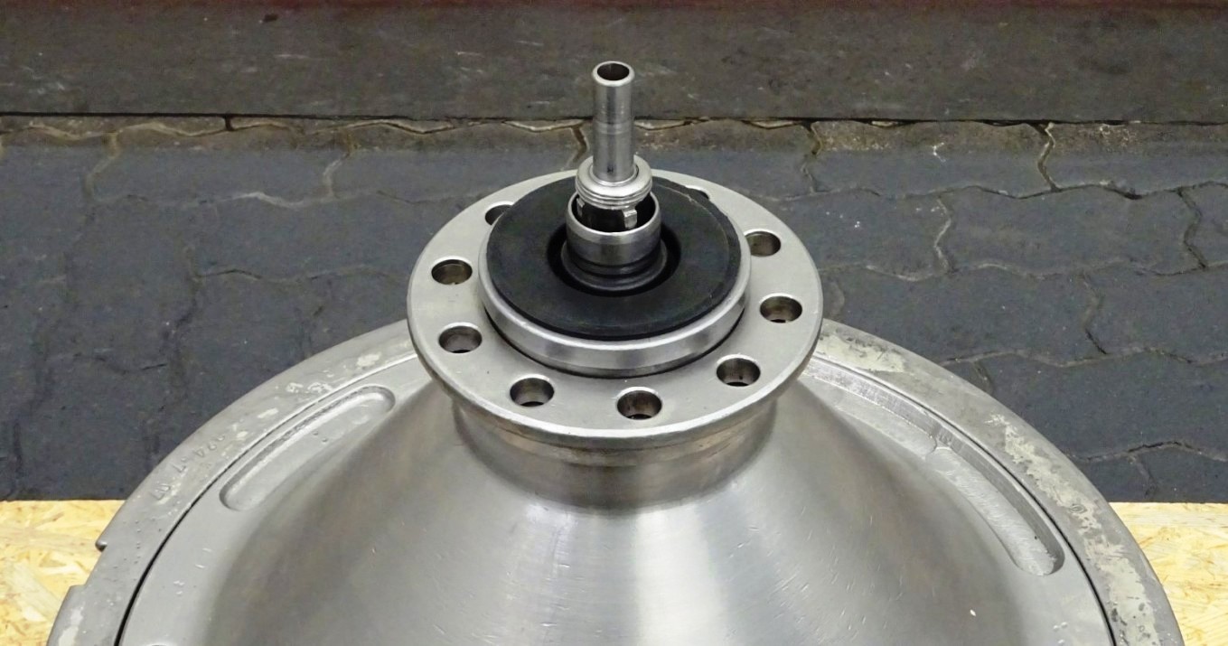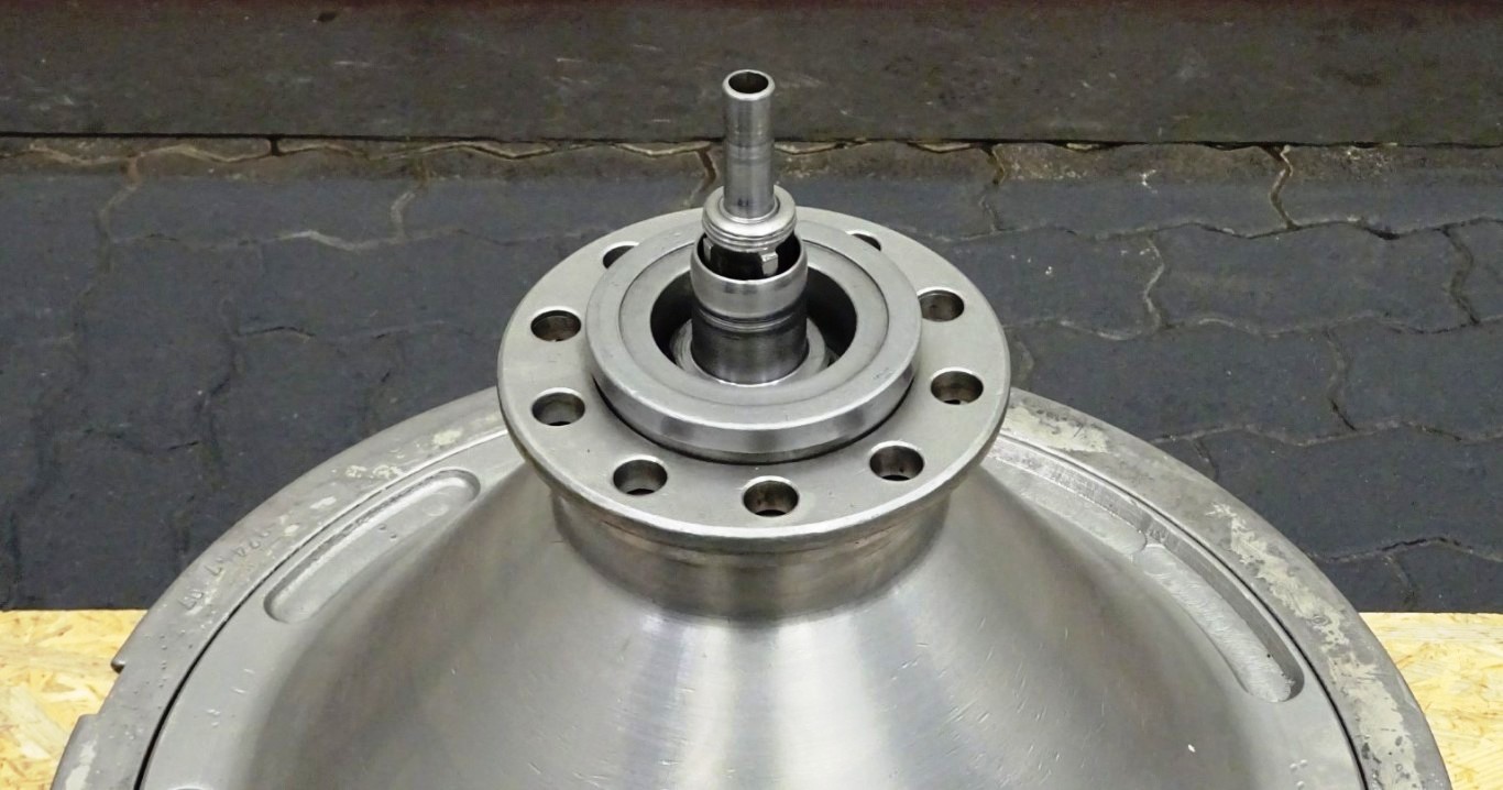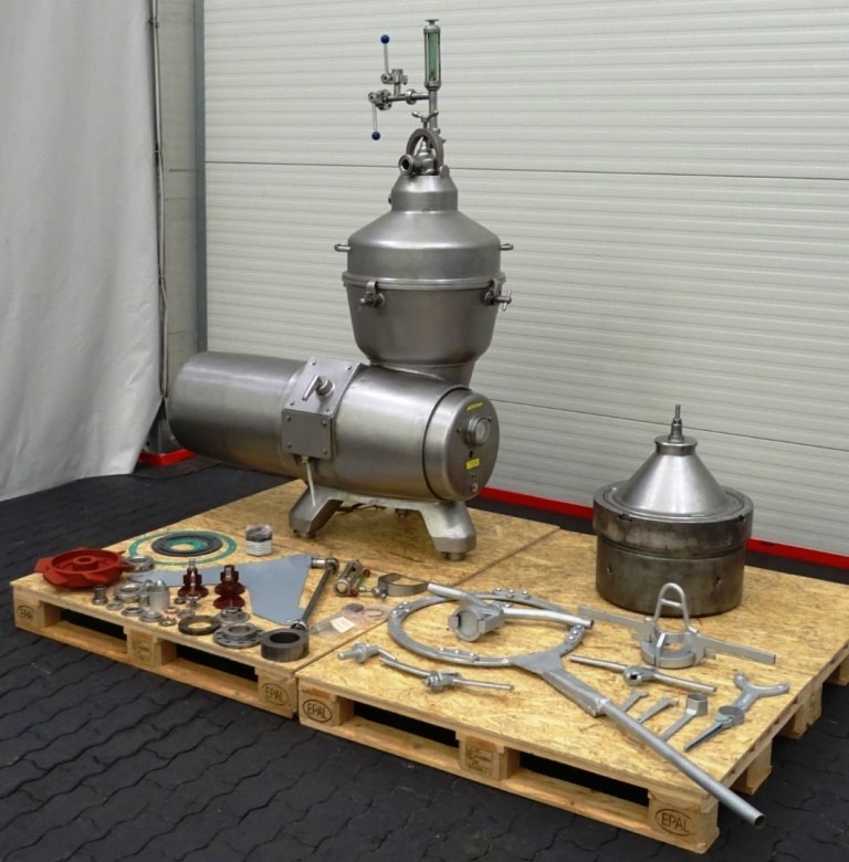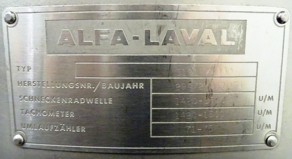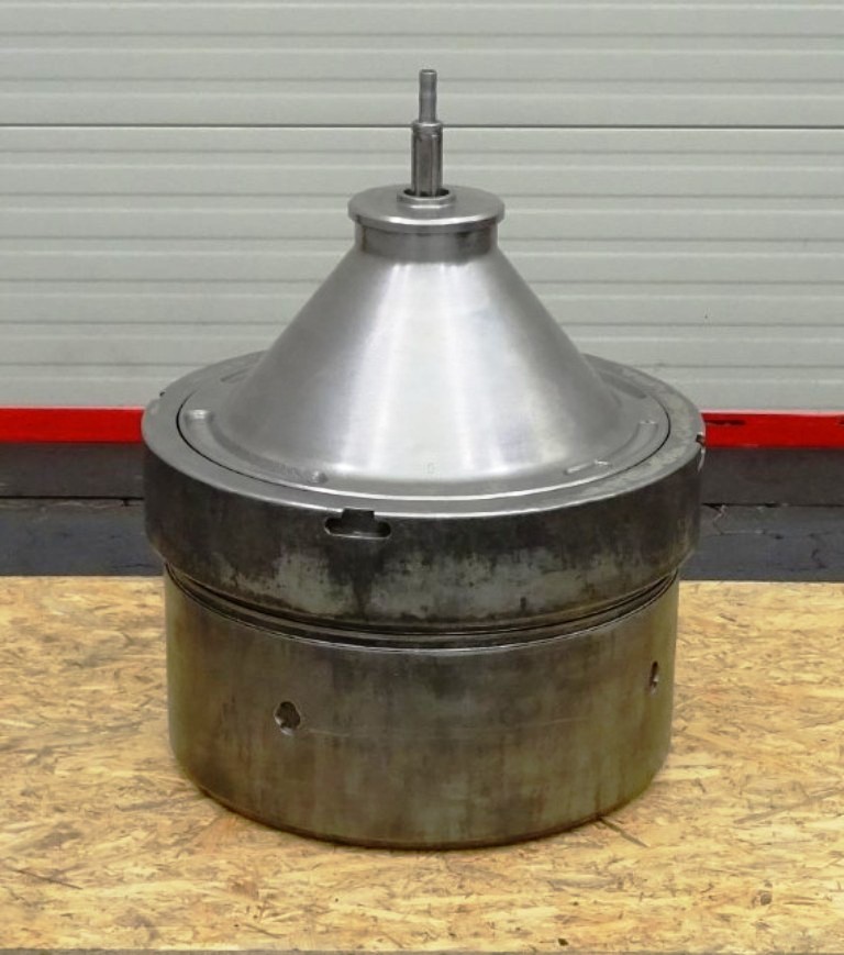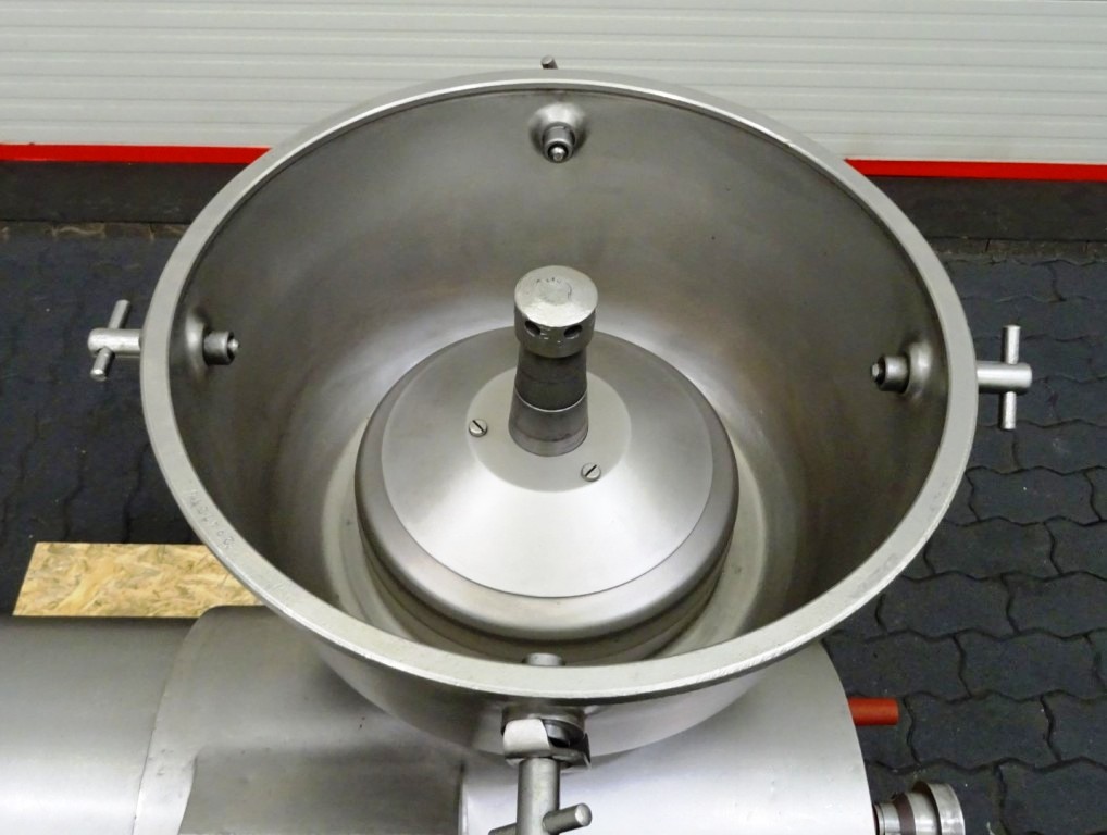 Max bowl speed 4500 RPM, rated @ 10,000 LPH, 22,000 PPH. 11 KW motor 380/3/50/1460 RPM, inlet and outlet pipes with flow indicator, tools and some spare parts. 1974 vintage. Excellent condition. Located in Europe.