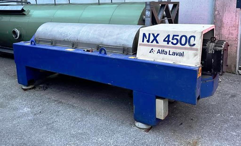 Max bowl speed 3250 RPM, 2665 x G, 20 degree contour bowl, 450 x 1910mm = 17.7 x 75.2" bowl ID, rated @ 90 GPM. 360 degree cake ports with wear protection, 6" single lead STC tiled conveyor, 37 KW motor 400/3/60/1480 RPM, 3.5 kNm gearbox, 15 KW ECB backdrive, feed tube, guards, stand, vibration isolation/switch, chutes and control panel. 1996 vintage. Very good condition. Located in Europe. Same as ALDEC G2-60 and NX 935.