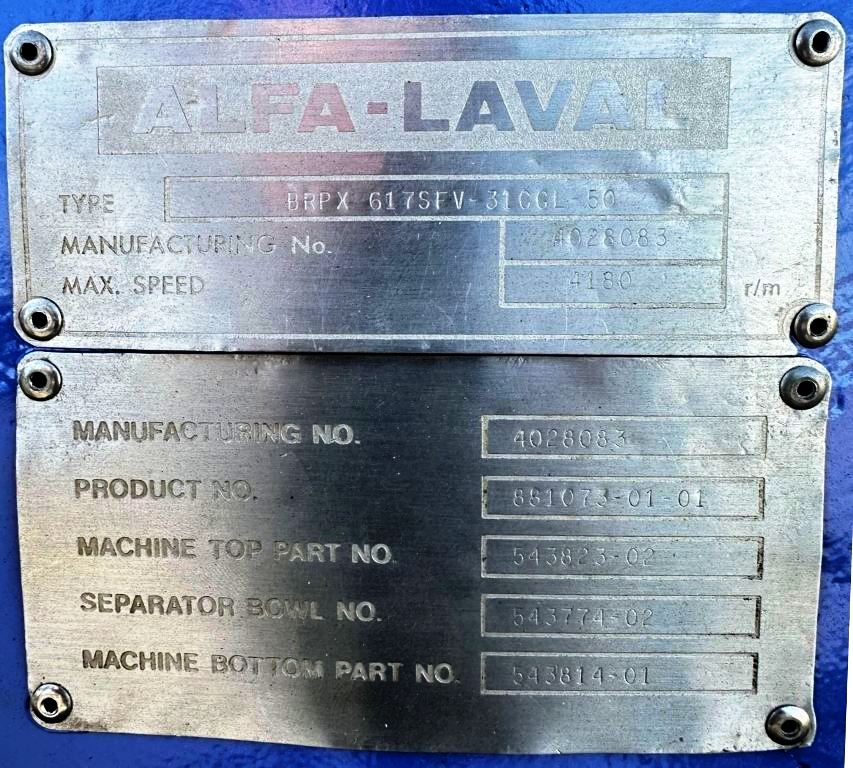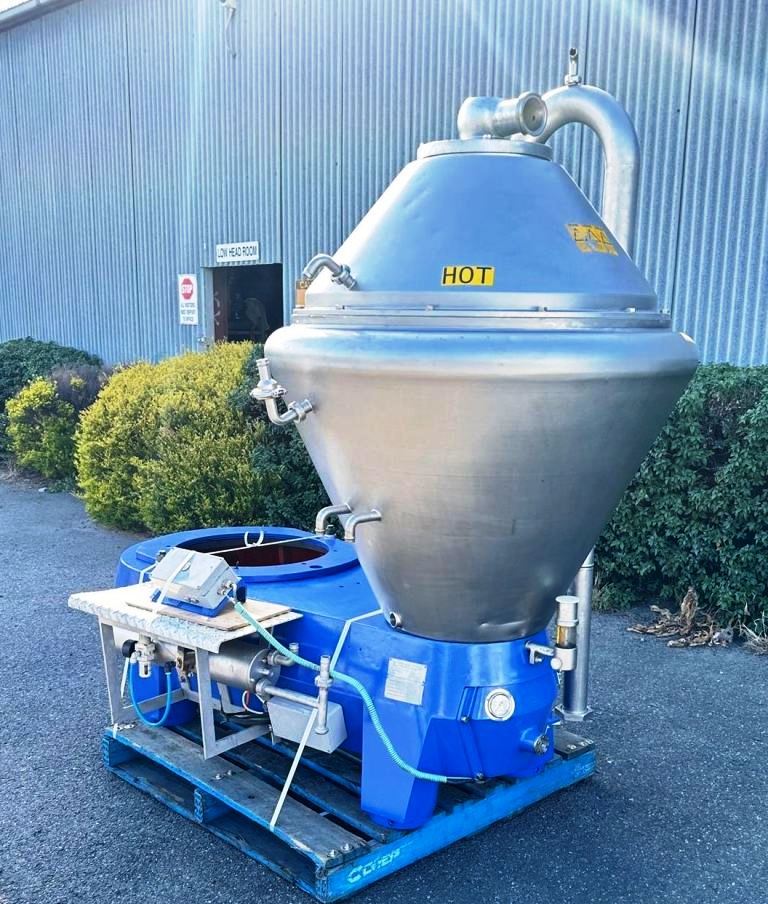 Max bowl speed 4180 RPM, rated @ 30,000 LPH (128 GPM), sludge cap 25.7 L. Self-triggering design, sludge cyclone, tools and manuals. No motor. Very good condition. Located in Australia.