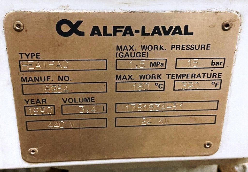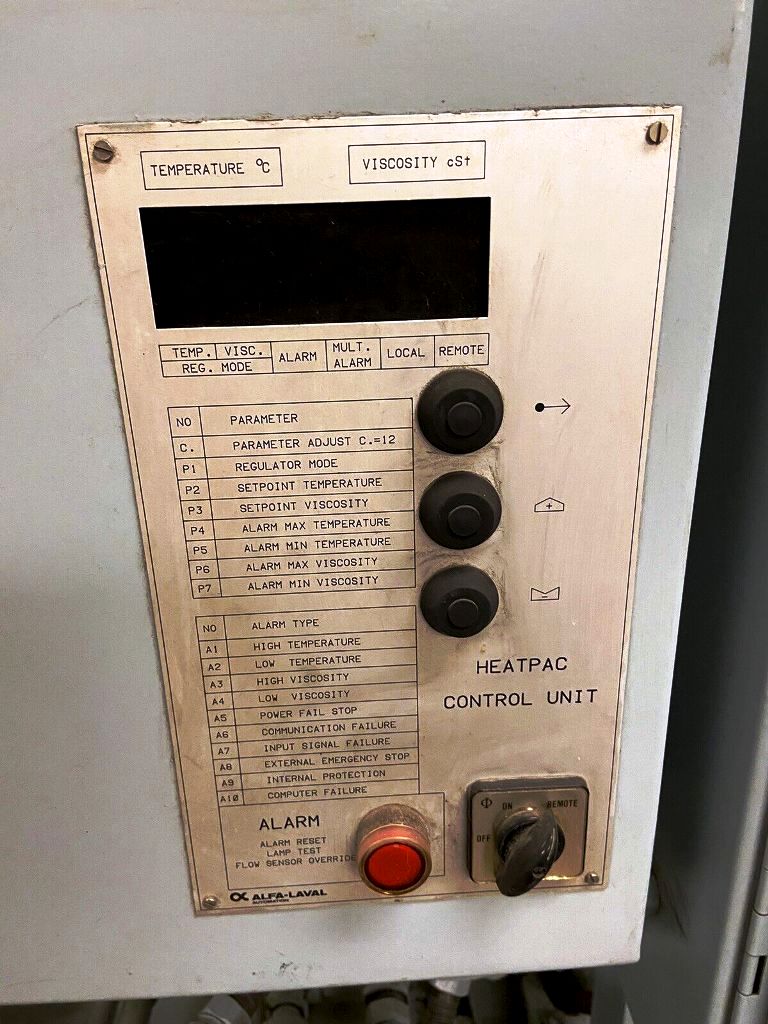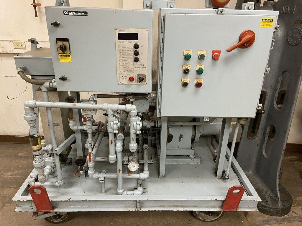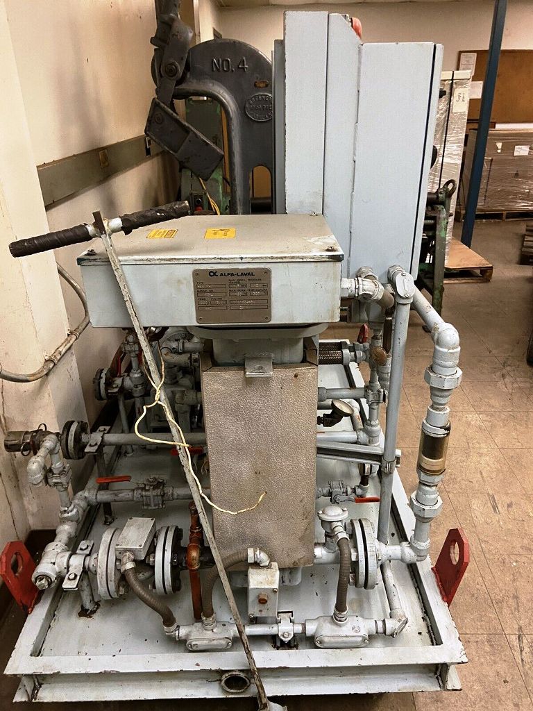 In addition to its powerful motor and high-speed capabilities, the Alfa-Laval MAB 104B-24-60 oil purifier skid features a 24 KW Heatpac, which is crucial for maintaining the desired temperature during the purification process. This temperature control is vital for optimizing oil viscosity and enhancing the separation of impurities. The unit is equipped with a user-friendly control panel that allows operators to monitor and adjust settings with ease, ensuring that the purification process is both effective and efficient. Furthermore, the skid-mounted design enhances portability, making it easy to relocate within a facility or transport to different job sites. This 1990 vintage unit is in very good condition, reflecting Alfa-Laval's commitment to durability and reliability in industrial applications.