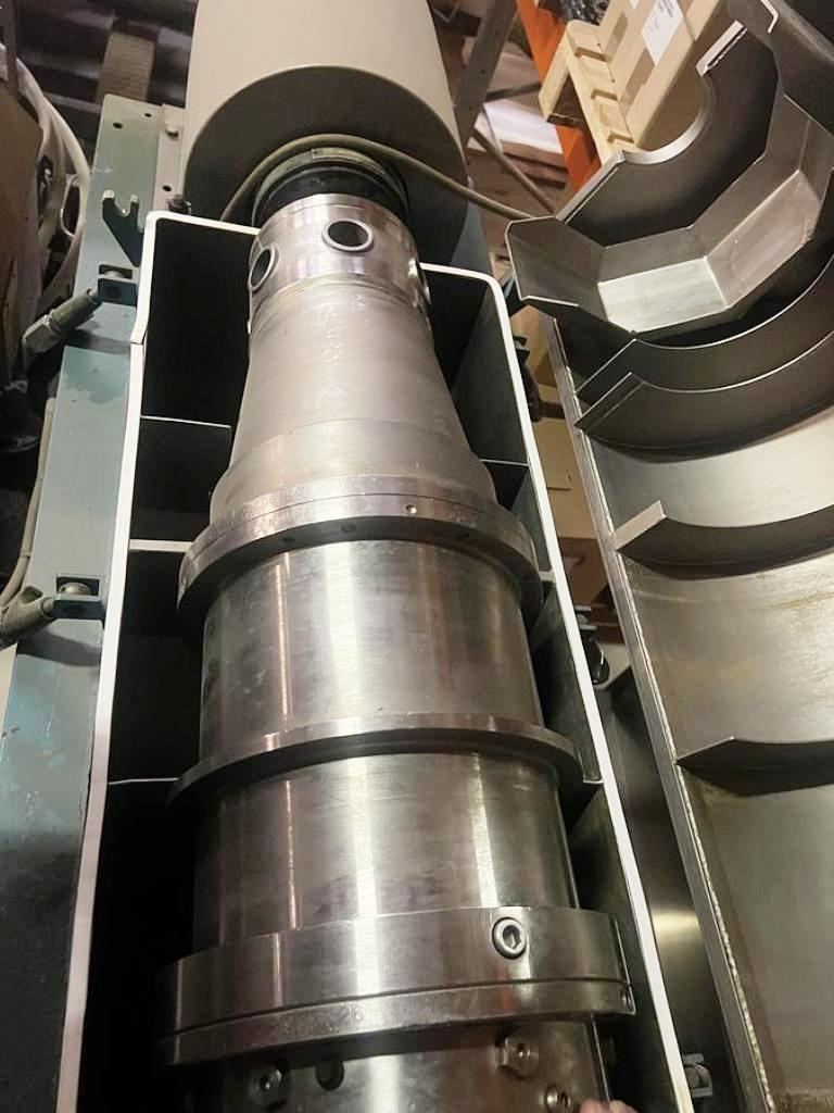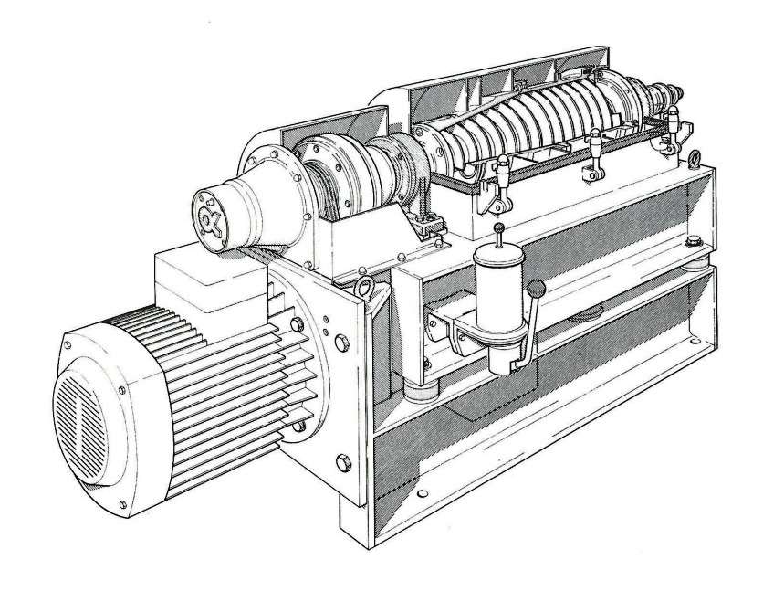 Max bowl speed 5600 RPM, 4000 x G, 9.2 x 27.6", pump on liquid discharge, 3.5" double lead hardsurfaced conveyor, 15 KW motor 380/3/50/2910 RPM, cake vibrator, 25:1 cyclo gearbox, 4 KW backdrive, feed tube, guards and vibration isolators/switch, unitized on a stand with chutes. 1978 vintage. Barely used in a pilot plant. Excellent condition. Located in Europe.