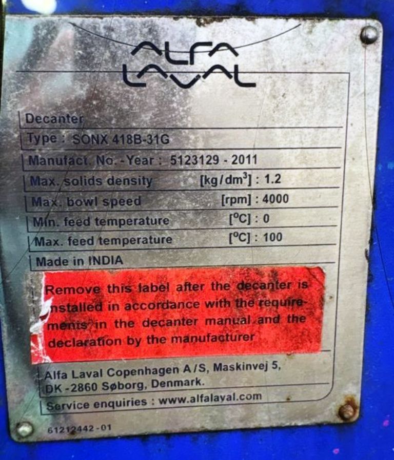 Alfa-Laval SONX 418B-31G decanter centrifuge, 316SS.