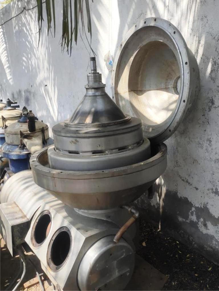 Max bowl speed 4800 RPM, hermetic bottom feed design, heavy liquid phase discharged under pressure, 18.5 KW motor 380/3/50/1450 RPM. Very good condition. Located in India.