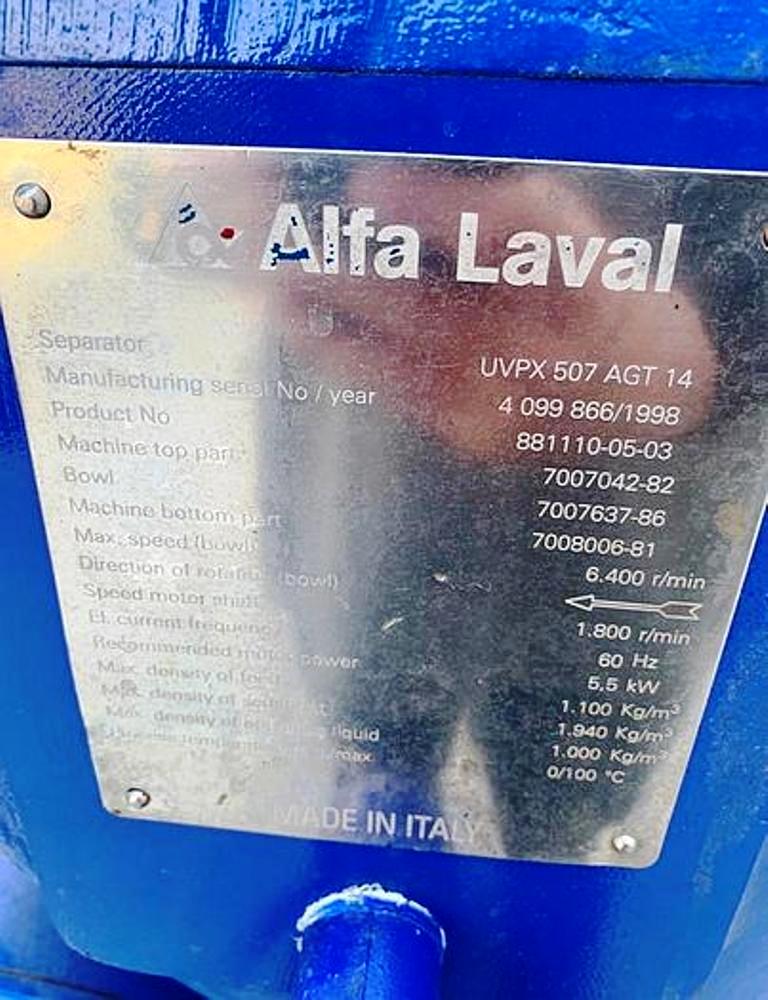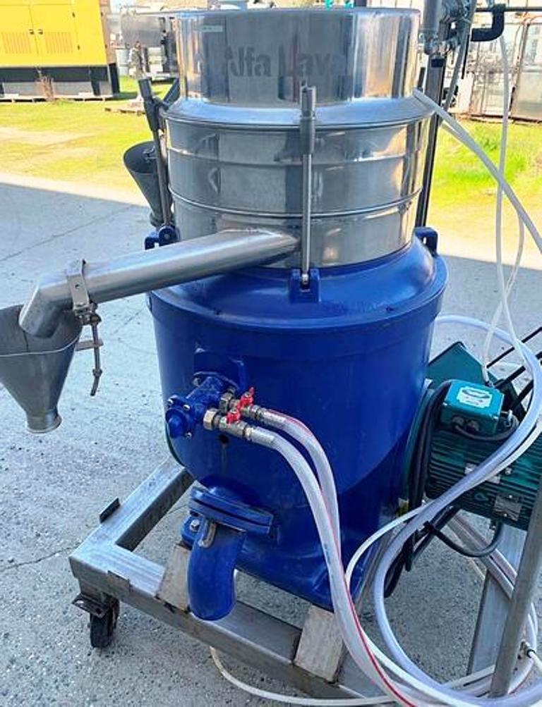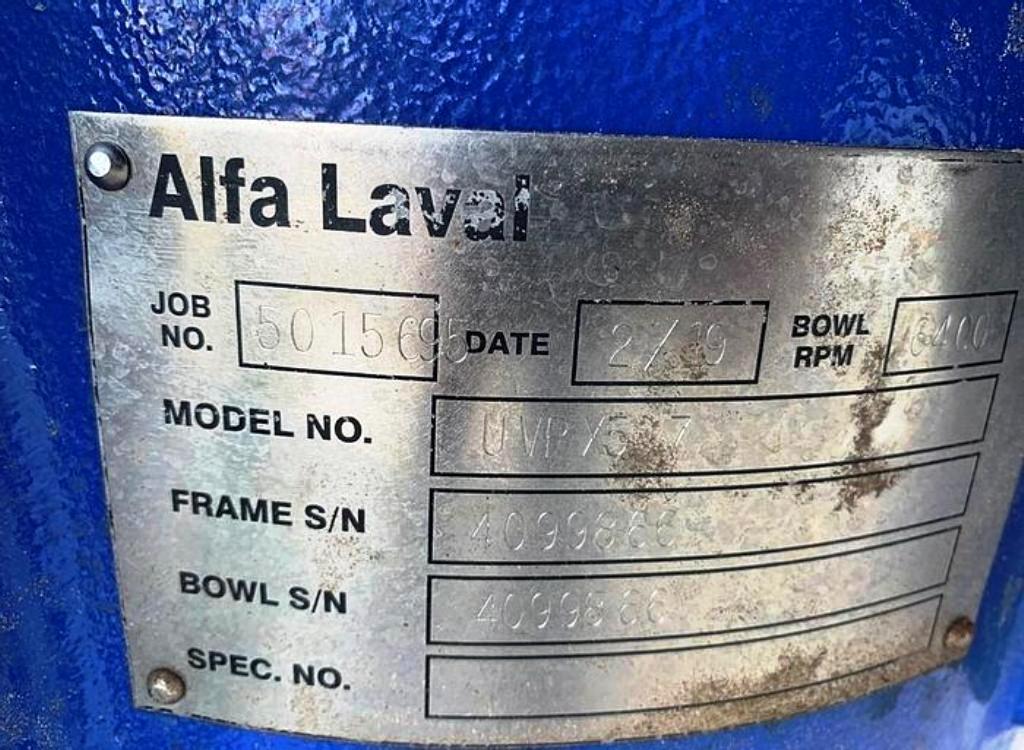 Max bowl speed 6400 RPM, 4.4 L sludge capacity, both liquid phases discharged by gravity, 7.5 HP motor 230/460/3/60/1760 RPM and control panel, mounted on a SS skid. 1998 vintage. Reconditioned in 2019 and only used for 10 hours on olive oil.