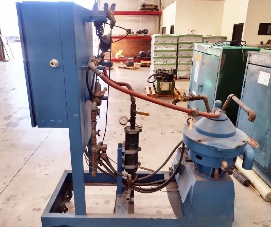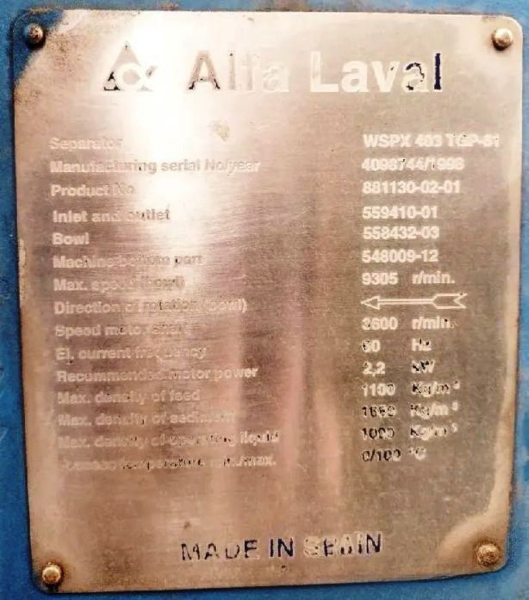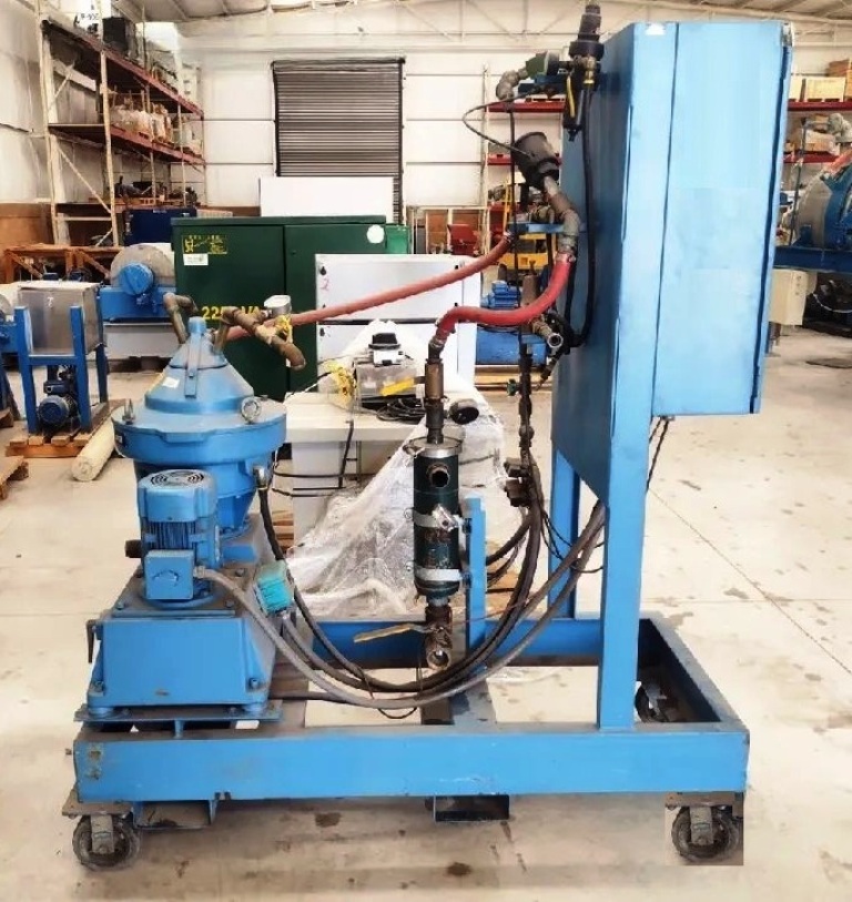 Max bowl speed 9510 RPM, both liquid phases discharged under pressure, 3 HP motor 460/3/60/3600 RPM, feed pump, water harness, vibration isolators and control panel, unitized on a portable skid. 1998 vintage. Very good condition. Located in Mexico. ***MISSING BOWL***