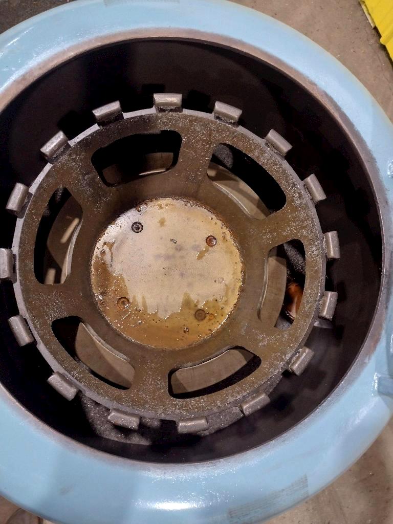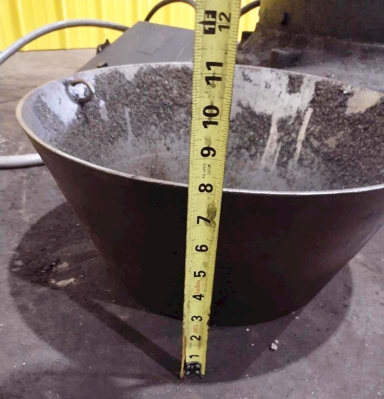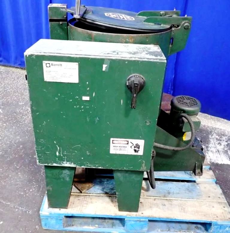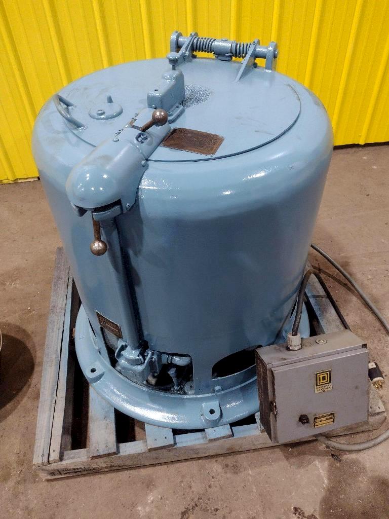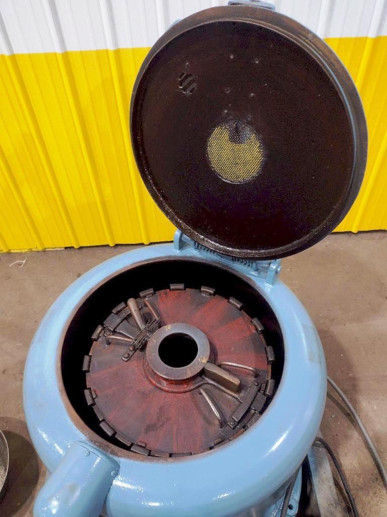Max bowl speed 1200 RPM, 18 x 8" chip pan ID, rated @ 16 cu ft/hr, chip pan capacity 2/3 bushel (0.8 cu ft), (20) 100 LB loads/hr, 2.5 HP 2-speed motor 230/3/60/1200 RPM. Very good condition.