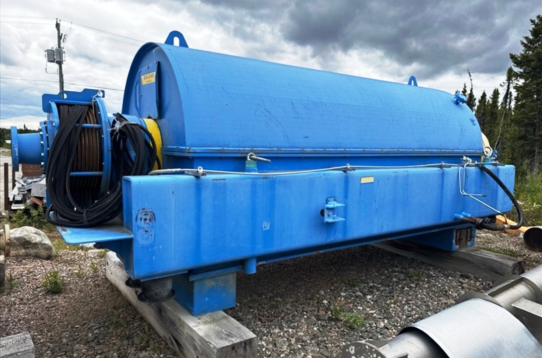 Max bowl speed 1600 RPM, 1137 G's, rated @ 4-10 TPH. Cyl/15/3 contour bowl, 6" single lead hardsurfaced conveyor. Excellent condition.