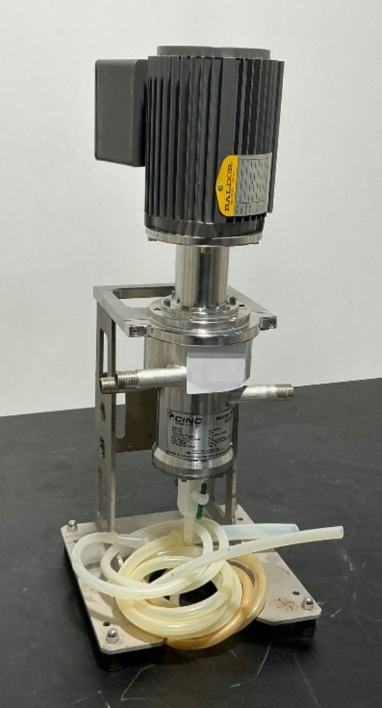 The CINC V02 annular centrifugal contactor, 316L SS. is engineered for high-efficiency liquid-liquid separation, making it an ideal choice for various industrial applications. With a maximum bowl speed of 6000 RPM, this contactor is capable of efficiently processing fluids at a rated capacity of 0.5 GPM (1.9 LPM, 114 LPH). The 50mm diameter rotor is designed to optimize the separation process, ensuring that the desired phases are effectively isolated. The unit is powered by a 0.18 KW explosion-proof (XP) motor, which is equipped with a variable frequency drive (VFD) for precise control over operational speed and performance. This feature not only enhances the efficiency of the separation process but also allows for adaptability to varying operational conditions, making it a versatile addition to any industrial setup.