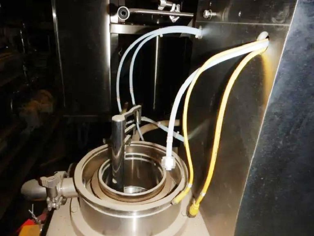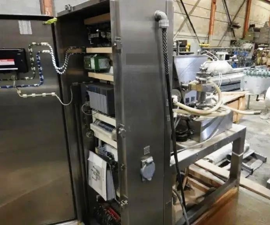 Equipped with a robust 1.5 HP motor operating at 230V/1/60/3450 RPM, the Carr P-6 Powerfuge provides reliable power for continuous operation. The integration of an Allen-Bradley PanelView 550 PLC control panel with Variable Frequency Drive (VFD) allows for precise control over the separation process, enabling operators to easily adjust parameters to suit specific application requirements. This user-friendly interface not only simplifies operation but also enhances the overall efficiency of the system. The unitized design on a skid includes all necessary piping and valves, ensuring a streamlined installation process. Additionally, the separate Clean-In-Place (CIP) and Sterilize-In-Place (SIP) skids facilitate thorough cleaning and sterilization, which are critical for maintaining product integrity and compliance with industry standards.