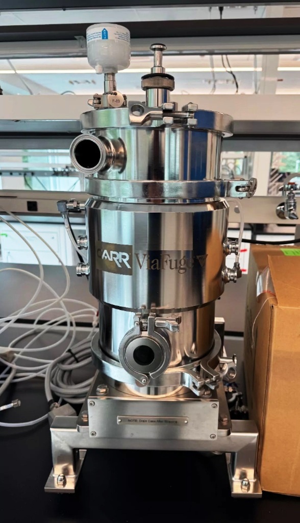 The Carr ViaFuge 9003 PLT Pilot clarifier centrifuge, 316L SS. is engineered for high-performance separation processes, making it an ideal choice for industries that require efficient liquid-solid separation. With a maximum bowl speed of 10,840 RPM, this centrifuge is capable of achieving a rated throughput of 240 liters per hour, ensuring rapid processing of materials. The robust construction utilizing 316L stainless steel not only provides excellent corrosion resistance but also enhances the durability of the unit, allowing it to withstand harsh operating conditions. The titanium bowl assembly further contributes to its longevity and reliability, making it suitable for a variety of applications, including pharmaceuticals, food processing, and chemical manufacturing.