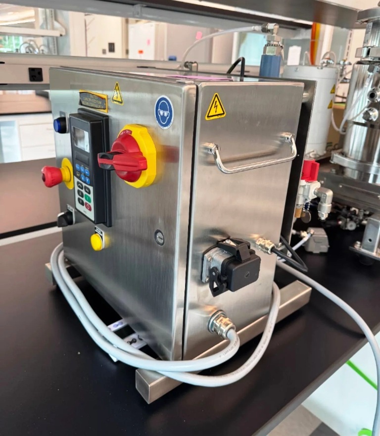 Max bowl speed 10,840 RPM, rated @ 240 LPH, 2-40C temp. 316L SS construction with titanium bowl assembly, 1 HP motor 115/1/60/20A, NEMA 4X control panel, jacket rated @ full vacuum 100 PSI @ -20 - 300 degrees, unitized on a stand. 2020 vintage. Excellent condition.