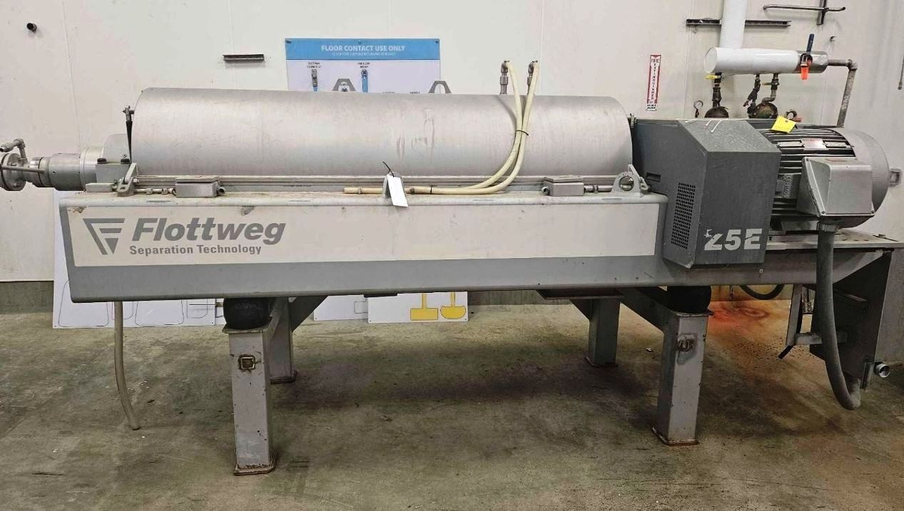Includes: progressive cavity feed pump, dual knock out pots, flow meter, heat exchanger (steam required) to heat your incoming feed, solids auger below centrifuge that extends 30" past the edge of the trailer, oil flows by gravity to a tank below the centrifuge, oil tank has heating coil inside. The exhaust steam from the heat exchanger is meant to be directed into the oil tank coil before it is returned to the boiler. Oil tank has 2 pitch fork style level sensors to kick on/off the oil pump. Water will be discharged under pressure off the side of the Fliegl triple axle trailer (European style) with handrails, stairways and catwalks. Never used. Exclusive.