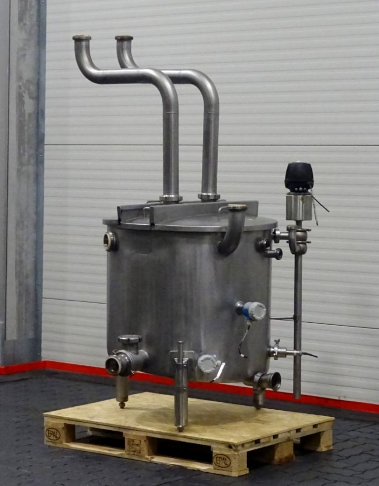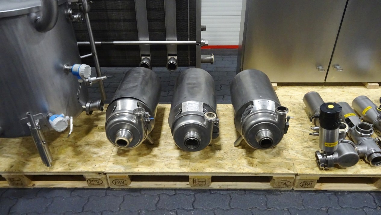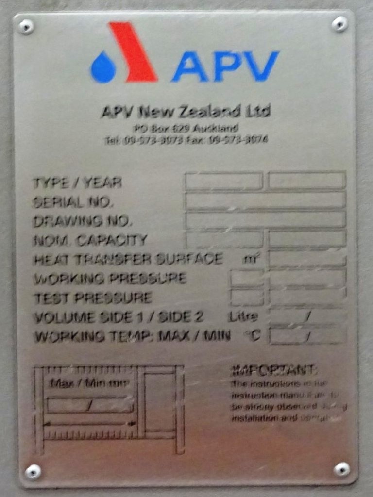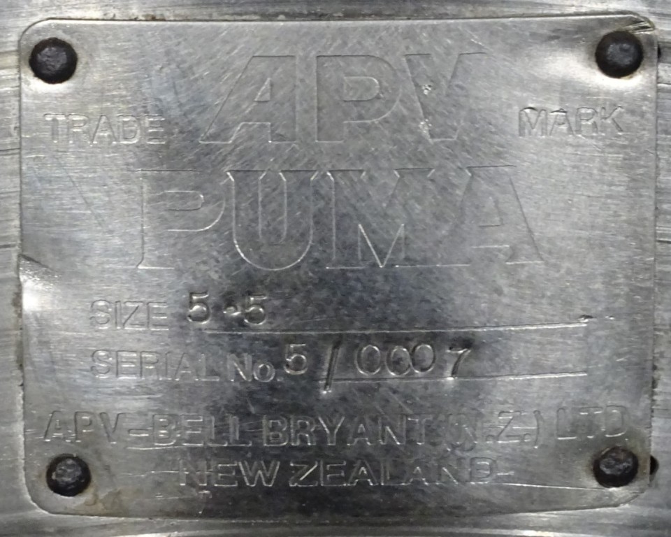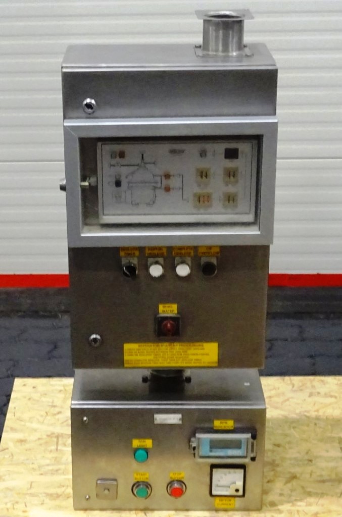 Includes APV N35 RKS plate heat exchanger for milk (4 sections), rated @ 25,000 LPH, 6 bar pressure, 2004 vintage. APV Puma product and booser pumps, Rosemount and Yogakawa digital flow transmitters. Westfalia MSA 200-01-076 milk separator, max bowl speed 4700 RPM, rated @ 25,000 LPH skimming, 37 KW motor 420/3/50/1475 RPM, counter pressure valve on inlet, manometer, manual flow regulation valve and flow indicator for cream, water valves, foundation frame, sludge tank, all inlet/outlet piping, tools and control panel. 1980 vintage. Very good condition. Located in Europe.