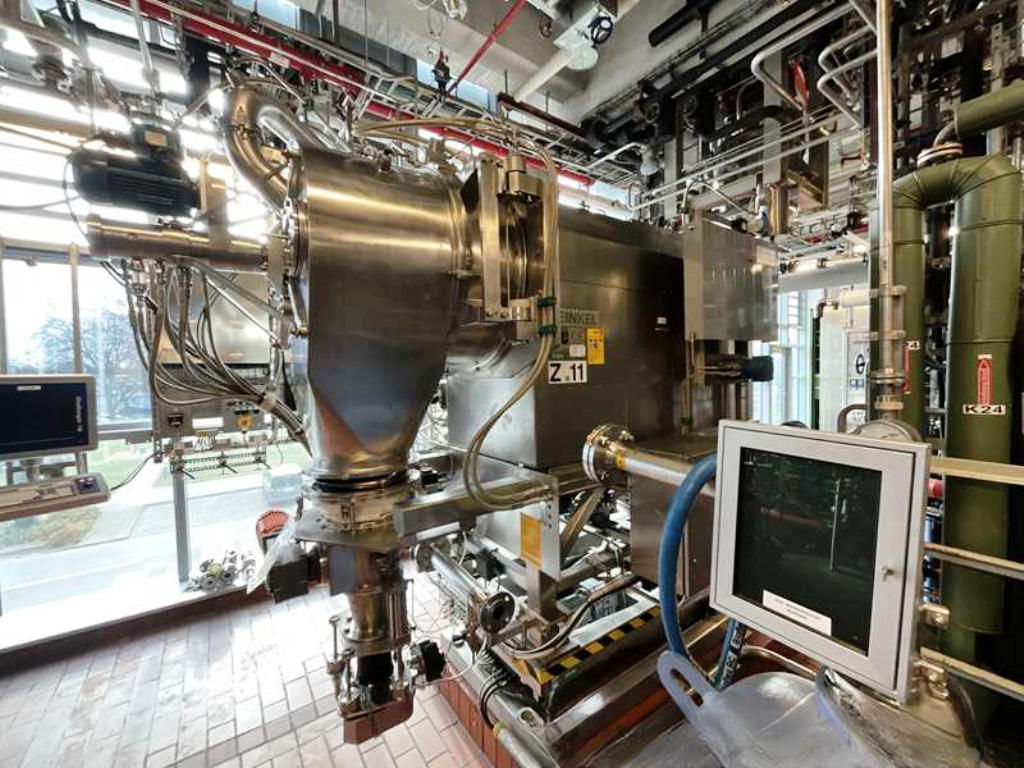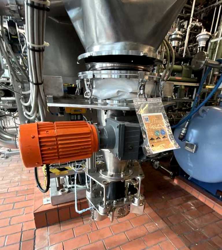 The Heinkel HF 600.1 Inverting Filter centrifuge, 316L SS. is engineered for high-efficiency separation processes, making it an ideal choice for various industrial applications. With a maximum bowl speed of 1940 RPM and a gravitational force of 1255 x G, this centrifuge excels in delivering rapid and thorough separation of solids from liquids. The 0.45 square meter filter area allows for effective filtration, accommodating a maximum volume of 52 liters and a load capacity of up to 65 kg. This robust design ensures optimal performance even under demanding operational conditions, making it suitable for industries such as pharmaceuticals, food processing, and chemical manufacturing.