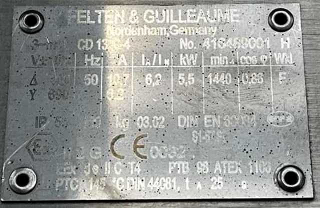 Equipped with a powerful 22 KW XP motor, the Heinkel HF 600.1 ensures reliable operation at 400/690 volts and 50 Hz, with a maximum speed of 2940 RPM. The inverting mechanism is driven by a dedicated 5.5 KW XP motor, while the 1.5 KW XP feed pump motor enhances the efficiency of the feeding process. The integration of an Allen-Bradley Panelview Plus 1250 PLC control panel provides operators with intuitive control and monitoring capabilities, ensuring seamless operation and real-time adjustments. Additionally, the BPE Burt polymer mixing system, complete with a tank and control panel, enhances the versatility of this centrifuge, allowing for a wide range of applications. The inclusion of four Hayward PMS15 valve controllers and a 150mm PSL discharge valve and piping further streamlines the operational workflow, ensuring efficient discharge of separated materials.