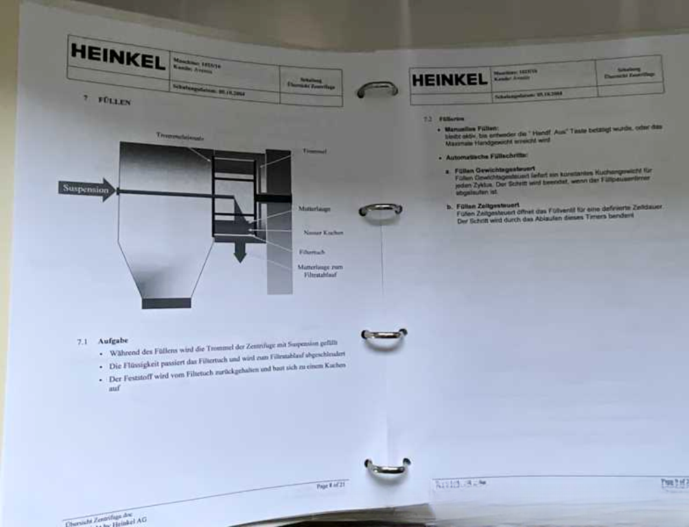 Constructed from high-quality 316L stainless steel, the Heinkel HF 600.1 is designed for durability and resistance to corrosion, making it suitable for use in harsh environments. The unit is mounted on a sturdy stainless steel stand and skid, ensuring stability during operation. This centrifuge, originally manufactured in 2002 and converted in 2006 from a 450mm to a 600mm drum, is in excellent condition and ready for immediate deployment. Located in Europe, it presents a valuable opportunity for businesses seeking reliable and efficient separation technology.