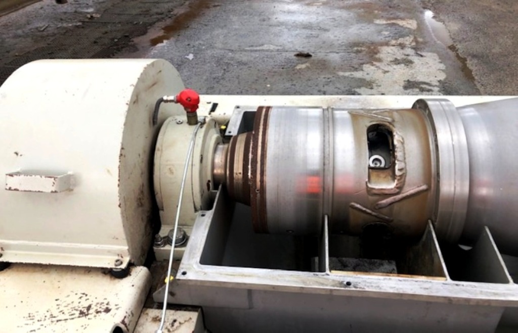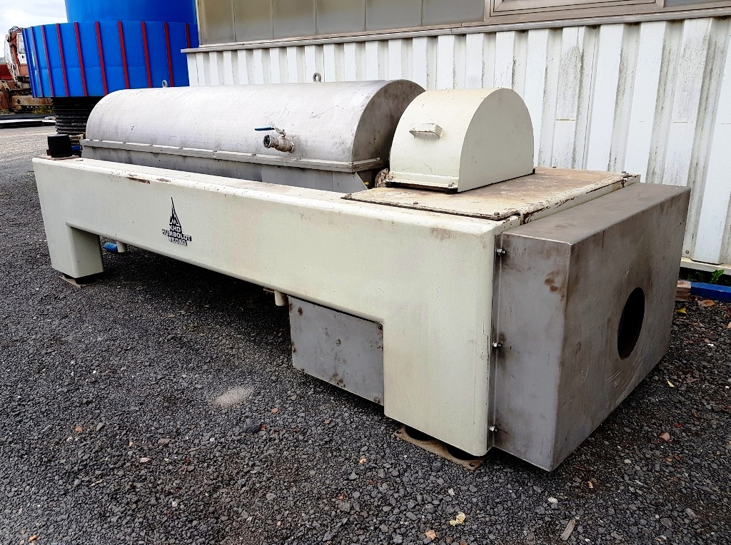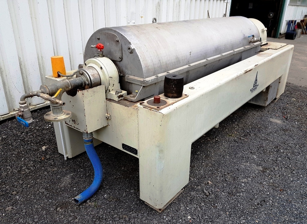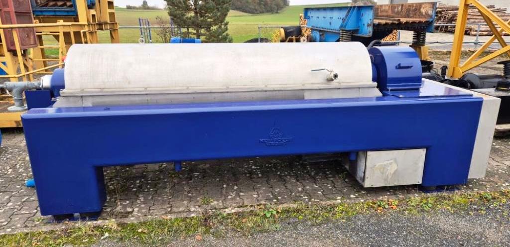 Max bowl speed 3500 RPM, 3065 x G, 18 x 72" bowl ID. 6" single lead STC-tiled conveyor, 30 KW motor 690/400/3/50/2930 RPM, Hiller hydraulic backdrive system with 11 KW motor, guard, feed tube, polymer dosing system, Seepex sludge pump and control panel. 1995 vintage. Very good condition. Located in Europe.