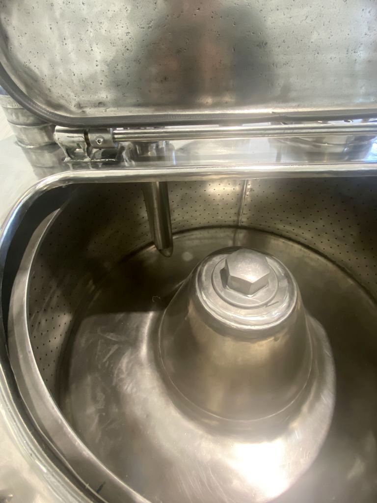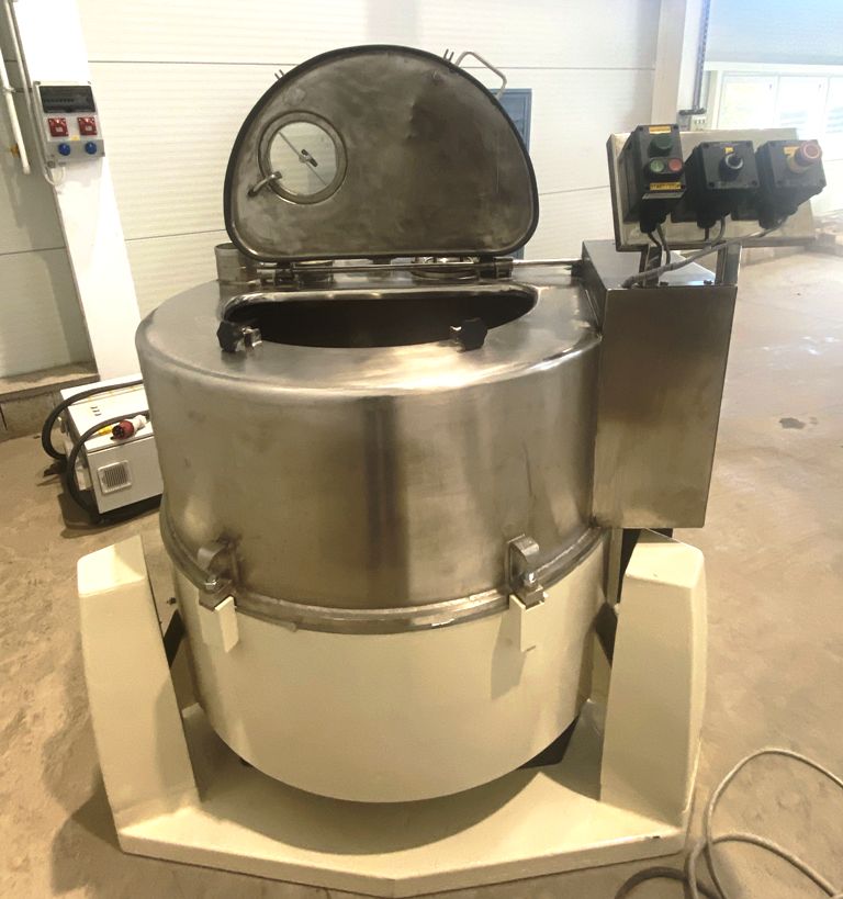 Max bowl speed 880 RPM, 500 x G, 1000 x 450mm basket ID, sanitary design, top unload, filtration area 1.4 sqM, volume 200 L, max load 200 kg, 18.5 KW ATEX motor 380/3/50/1440 RPM, sight glasses, feed, rinse and wash pipes with control panels. 2024 vintage. Like new. Located in Europe.