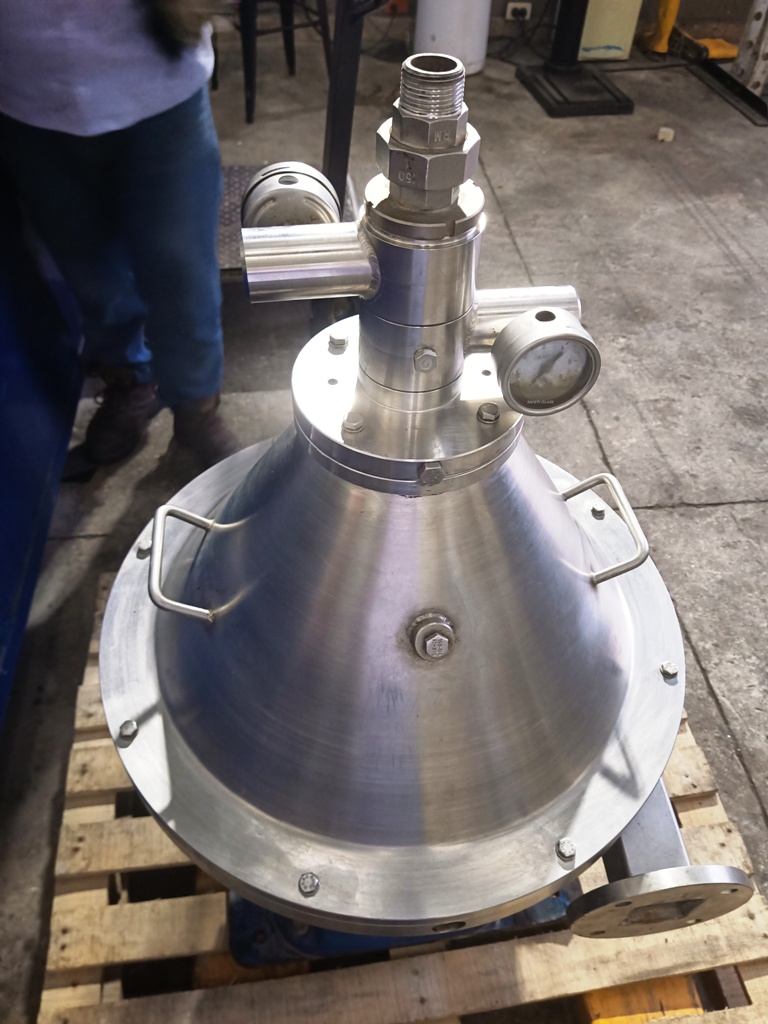 Max bowl speed 8500 RPM, rated @ 5,000 LPH, 10 L bowl volume, 5 L solids capacity, both liquid phases discharged under pressure. 5.5 KW motor 440/3/60/1756 RPM, tools, manual and drawings. 2015 vintage. Excellent condition. Located in South America.