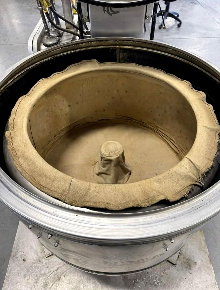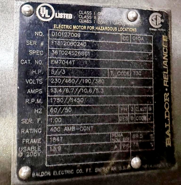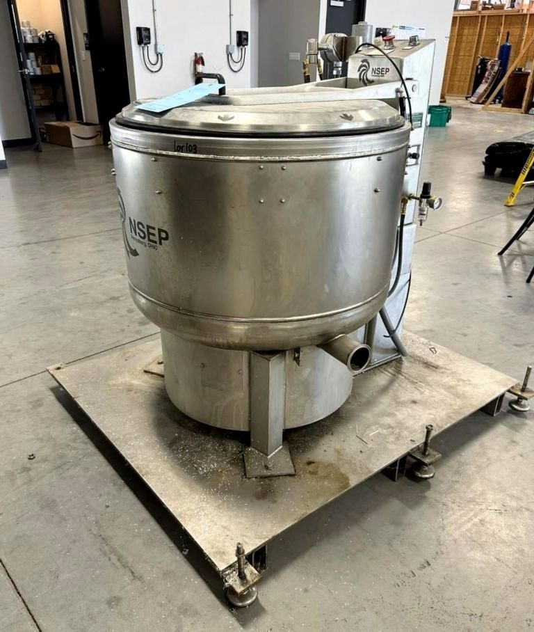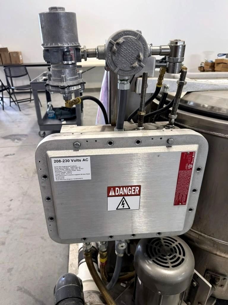 Max bowl speed 1740 RPM, 1200 x G, 6.54 cu ft/100 lbs capacity, 30 x 16" basket ID. 5 HP XP motor 480/3/60/1800 RPM, fume purge system and XP timer controls, mounted on a SS skid. 2019 vintage. Excellent condition.