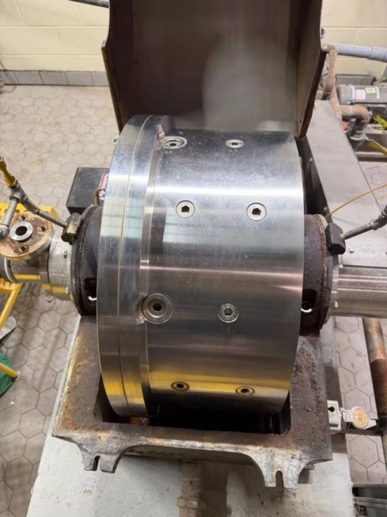 The Podbielniak B-250 centrifugal contactor, 316SS. is engineered for high-performance applications in the pharmaceutical and chemical industries. With a maximum bowl speed of 3200 RPM, this centrifugal contactor efficiently facilitates multistage liquid/liquid extraction and washing processes. Its robust design allows it to operate under demanding conditions, with a maximum pressure rating of 250 PSI and a temperature tolerance of up to 250°F. This versatility makes it an ideal choice for various applications, including broth fermentation, where it can handle flow rates of up to 25 GPM (6000 LPH). The unit is powered by a reliable 10 HP motor, operating at 575V, 3-phase, 60 Hz, and 1525 RPM, ensuring consistent performance across a range of operational demands.