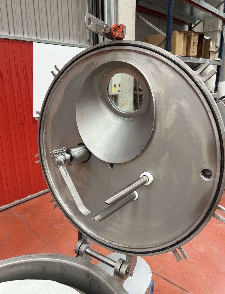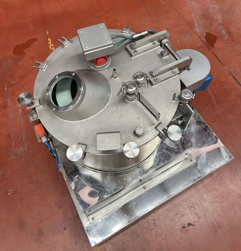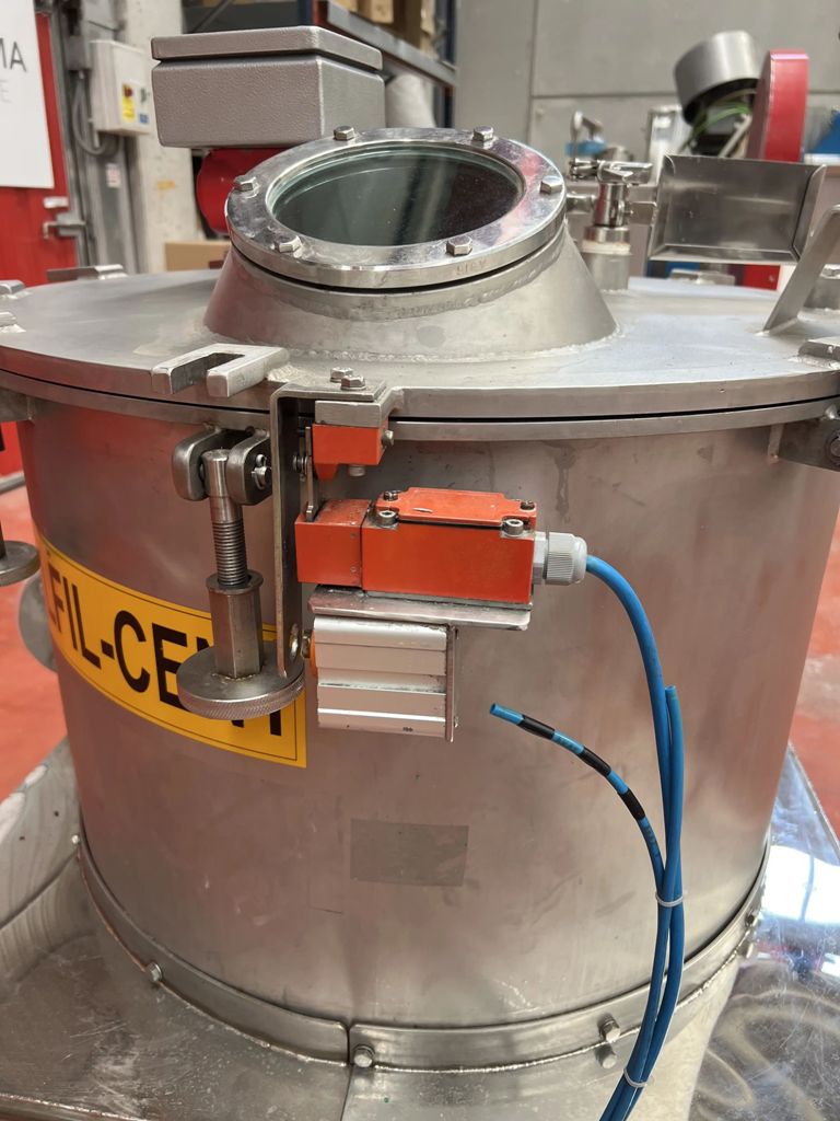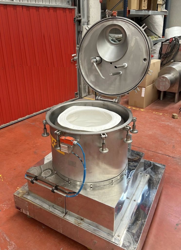 Max bowl speed 1400 RPM, 657 x G, 600 x 320mm (23.6 x 13.8") basket ID, 40 L basket volume, max load 50 kg. 4 KW motor 380/660/3/50/1420 RPM, feed and rinse tubes, plow, sight glass, lid safety lock, flip-top design, vibration switch/isolators, mounted on a skid with control panels. 1997 vintage. Excellent condition. Located in Europe.