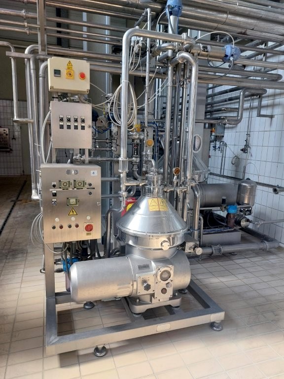 Max bowl speed 8600 RPM, milk skimming 7000 LPH. 15 KW motor 380/3/50/1450 RPM, all valves and piping, unitized on SS skid with control panels, tools and manuals. Excellent condition. Located in Europe.