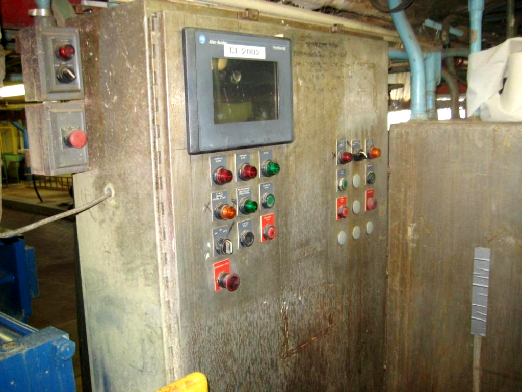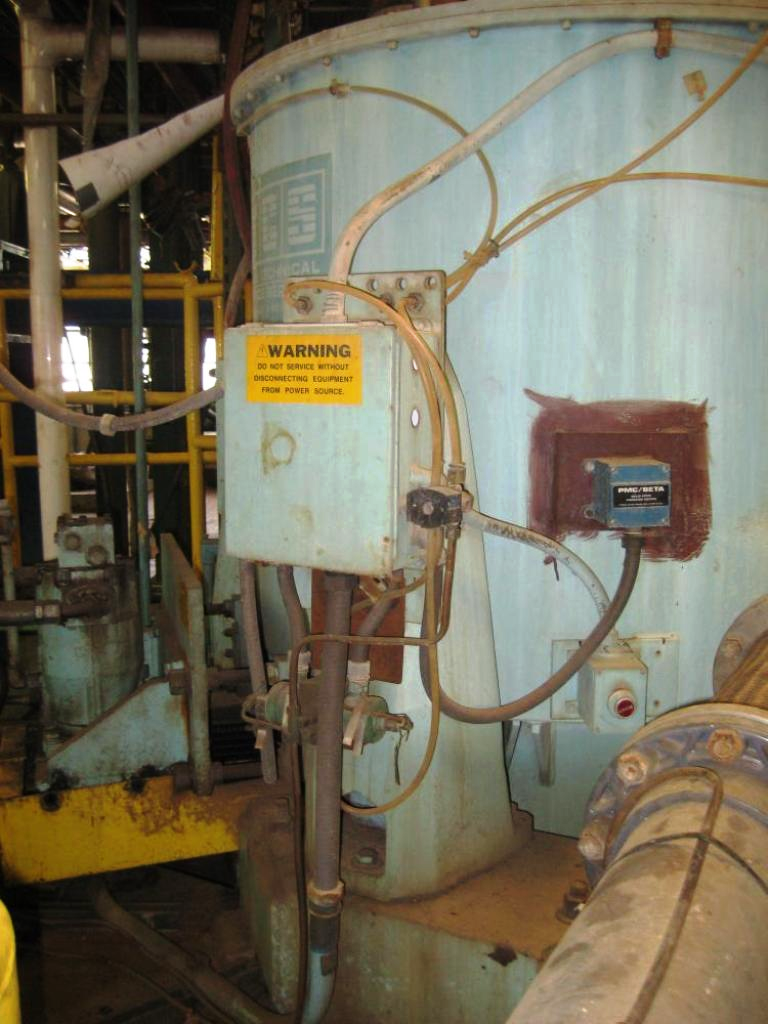 Max bowl speed 1400 RPM, 900 x G, 16 cuft cake capacity. Hydraulic motor, power pack with 50 HP XP motor 230/460/3/1750 RPM, 1/2 hinged top cover, pneumatic cake plow with actuator, feed tube, rinse tube, sight glass, skimmer tube, SS discharge chute and control panels. Very good condition.