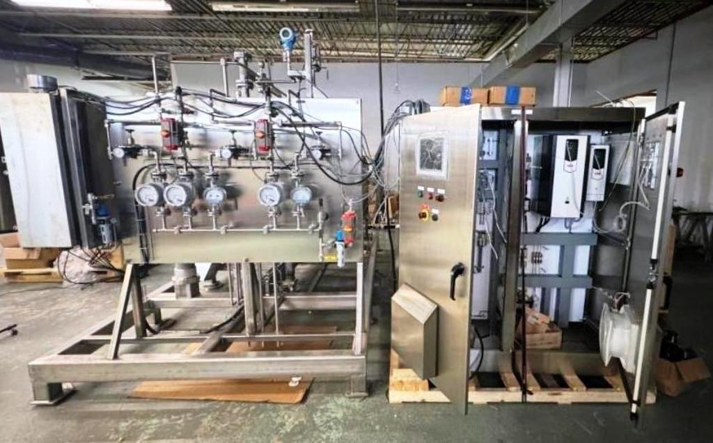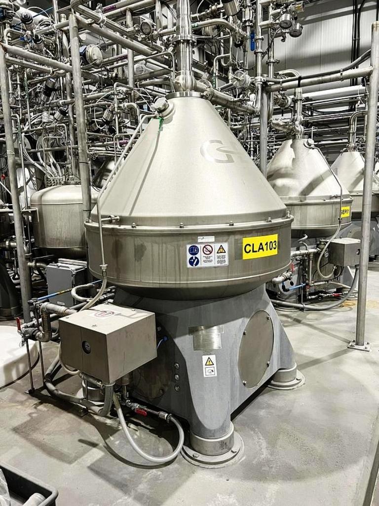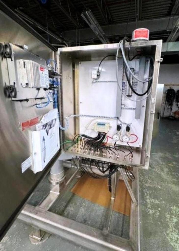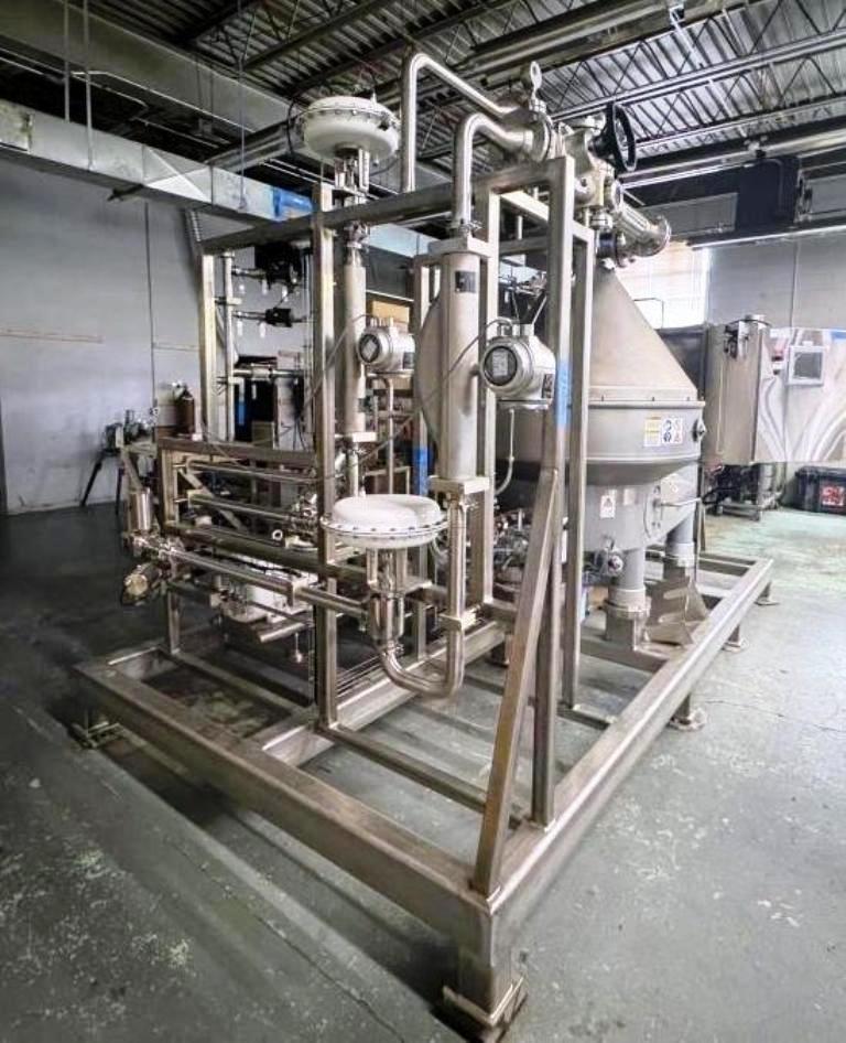 Max bowl speed 4800 RPM, rated @ 15,000 LPH, bowl volume 60 L, sludge cap 24 L. 75 KW motor 460/3/60/1775 RPM, sludge cyclone, water harness, all valves and piping, vibration switch/isolators, Seepex pump, tools and PLC control panel, unitized on a SS skid. 2024 vintage. Never used.