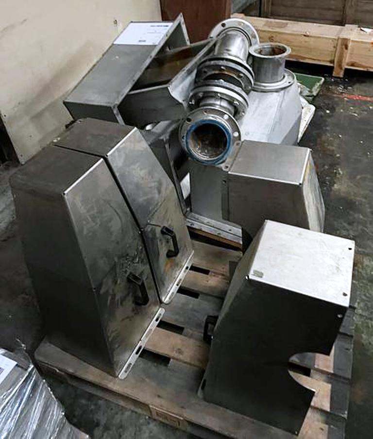 Max bowl speed 4000 RPM, 4112 x G, 460 x 1840mm bowl ID. 6.25" single lead hardsurfaced conveyor, 45 KW motor 380/660/3/50/1475 RPM, 15 KW backdrive, guards, feed tube, vibration switch/isolators, chutes, discharge pump and control panel with VFDs. 2015 vintage. Excellent running condition with 6 month full mechanical warranty. Located in Europe.