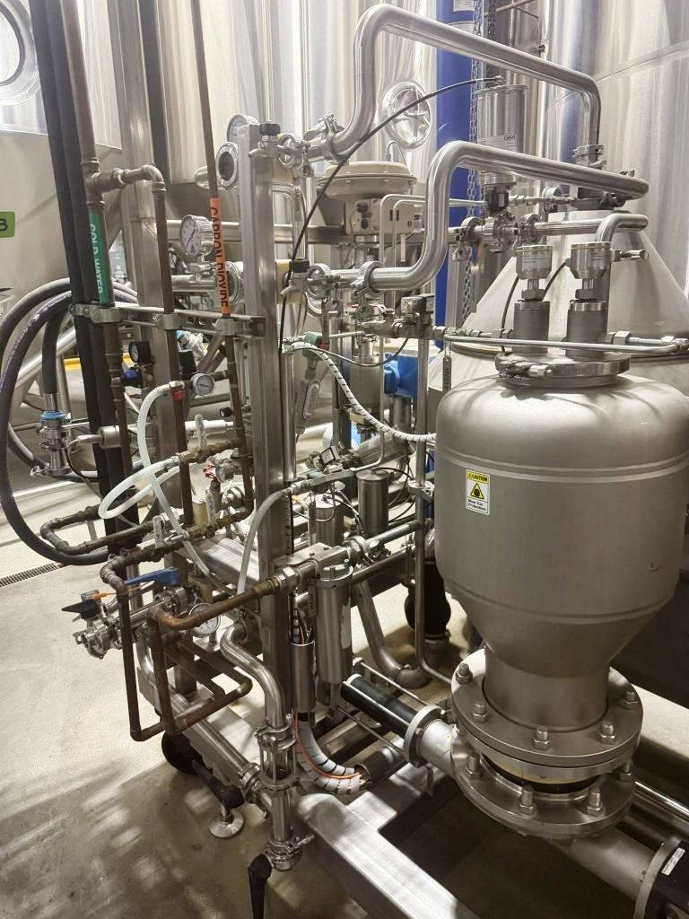 The Westfalia GSC 60-06-077 Hydrostop clarifier skid, 316SS. is not only designed for performance but also for ease of use and maintenance. The integrated Allen Bradley PLC control panel, equipped with a PanelView 1000 Color Touch Screen HMI, allows operators to monitor and control the system with precision. This user-friendly interface simplifies the management of the clarifier's operations, enabling real-time adjustments and diagnostics to be performed effortlessly. Additionally, the unitized skid design facilitates easy installation and relocation, making it a practical choice for facilities that may require equipment to be moved or reconfigured frequently. Having previously been utilized in a brewery setting, this clarifier skid has proven its reliability and efficiency in a demanding environment, and its excellent condition ensures that it is ready for immediate deployment in your operations.