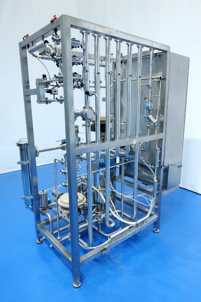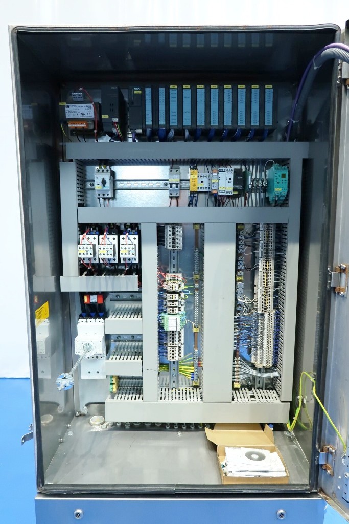 Max bowl speed 6000 RPM, rated @ 4000-5400 LPH input, 900-1100 KPH output @ 18%. 22 KW motor 400/690/3/50/1480 RPM, solids cyclone, flow meter, filters, valves, sensors, base frame, vibration isolators, spare parts kit, tools and full documentation. CIP system, Westfalia C1000 cooler with 18.5 KW motor and sterile air filter, motor starter, PLC control panel with VFDs and touch screen HMI. 2010 vintage. Excellent condition. Located in Europe.