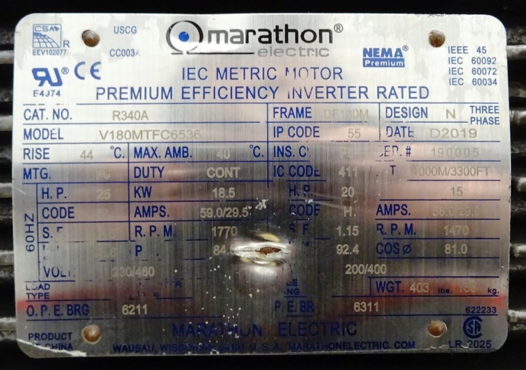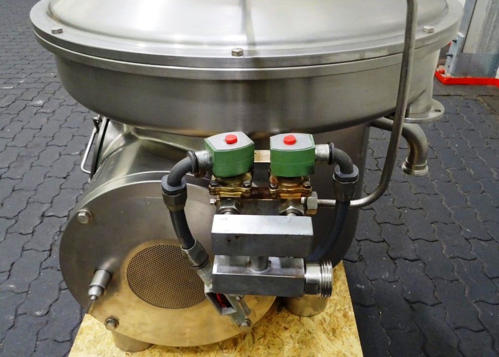 Max bowl speed 5920 RPM, rated @ 10,000 LPH on hot milk. 18.5 KW motor 230/460/3/50/1770 RPM, water valves, all inlet/outlet pipes, tools and several spare parts. 1982 vintage. Very good condition. Located in Europe.